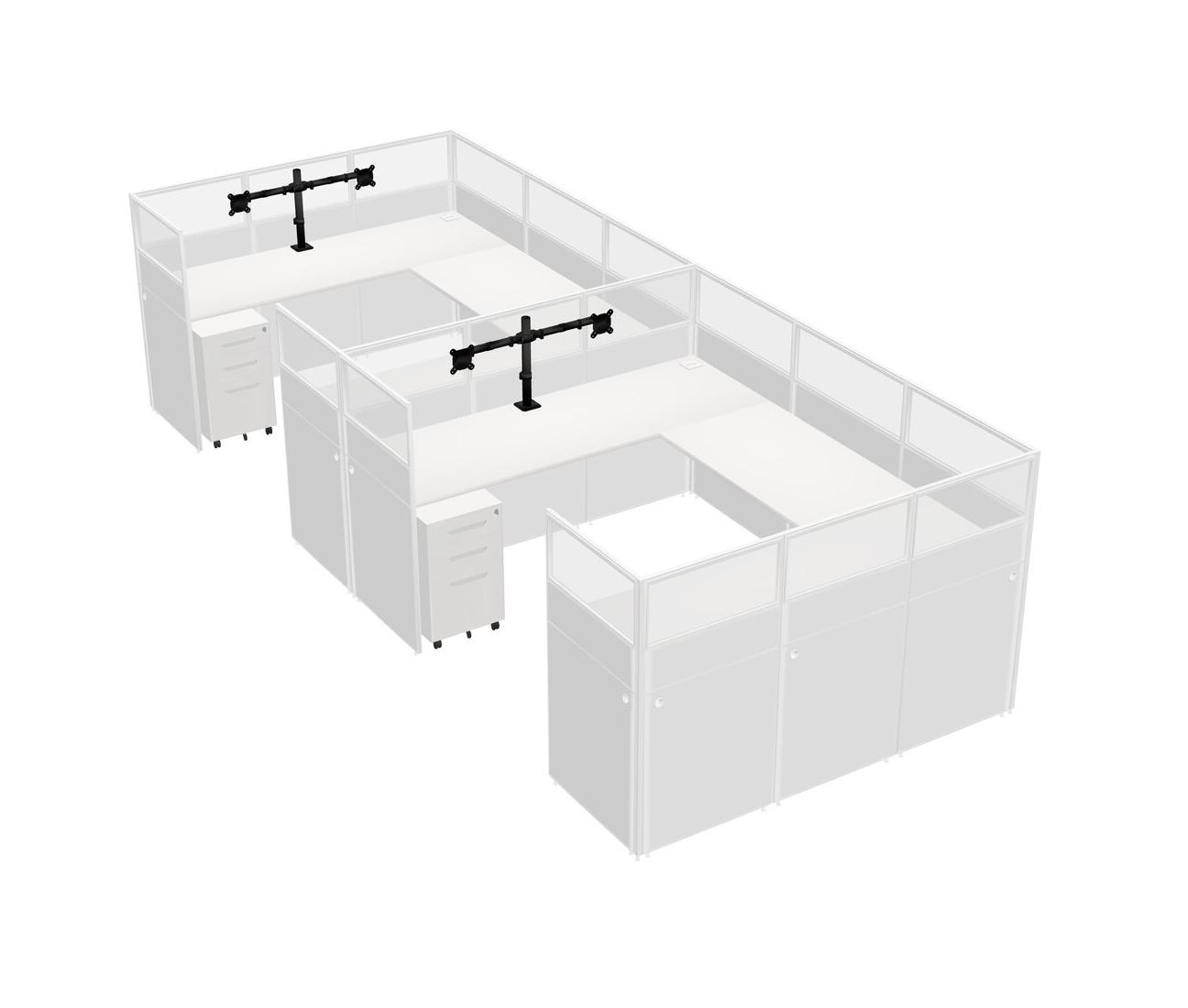 White U-shaped Panel System For 2 Person + Monitor Arm (double Arms) + Metal Mobile Drawers For 2 User(s)