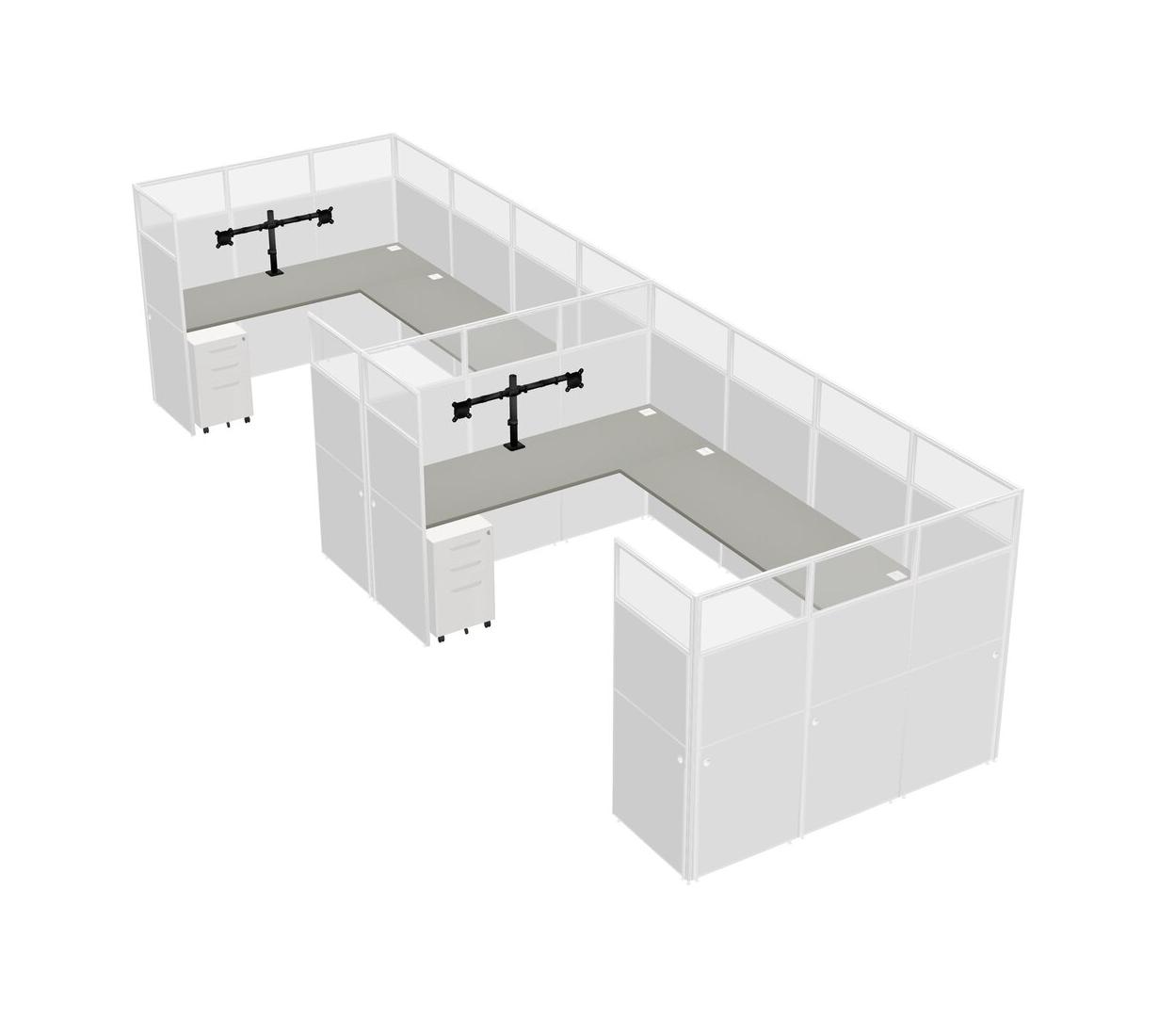Grey Shadows U-shaped Panel System For 2 Person + Monitor Arm (double Arms) + Metal Mobile Drawers For 2 User(s)