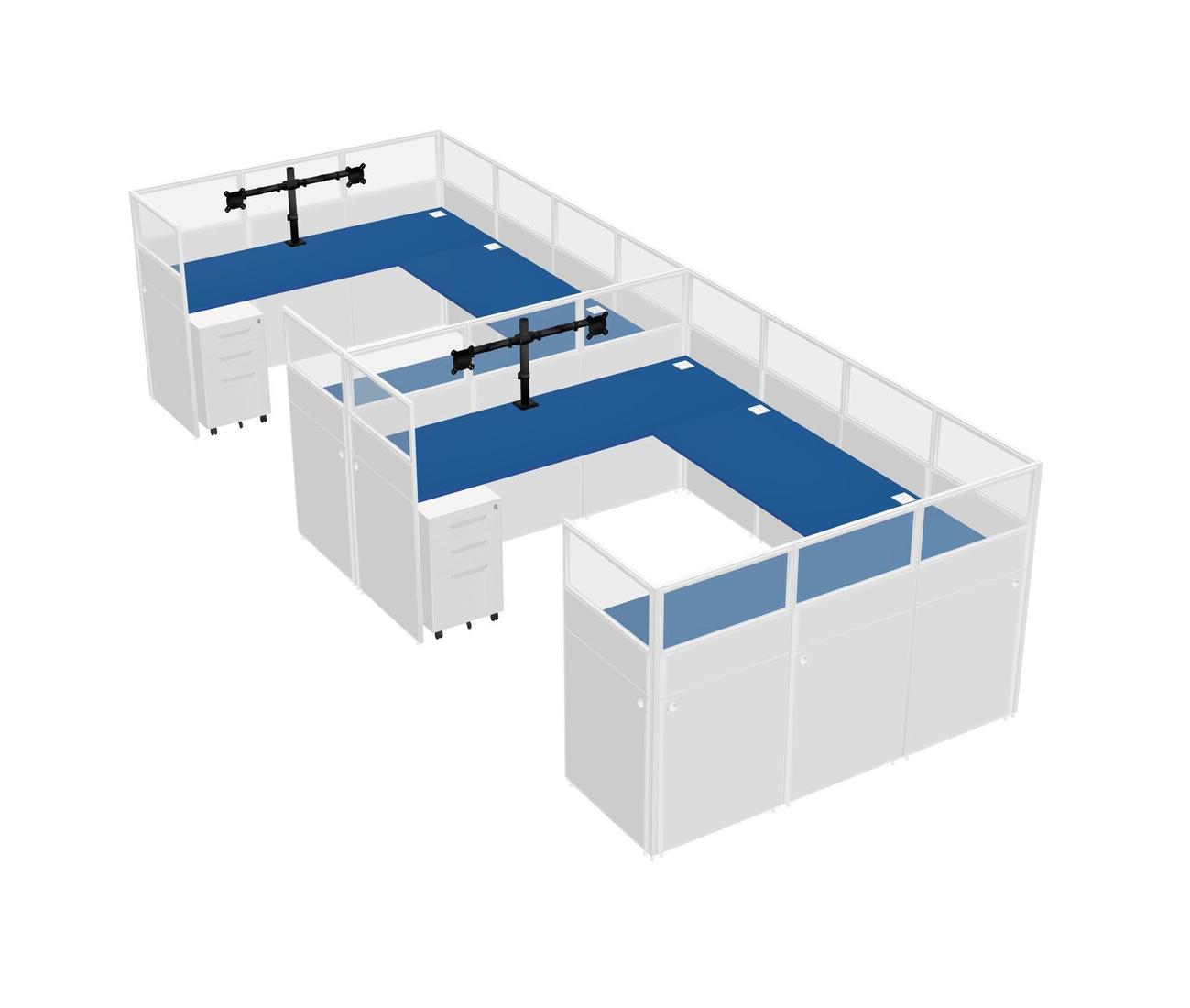 Prism Blue U-shaped Panel System For 2 Person + Monitor Arm (double Arms) + Metal Mobile Drawers For 2 User(s)