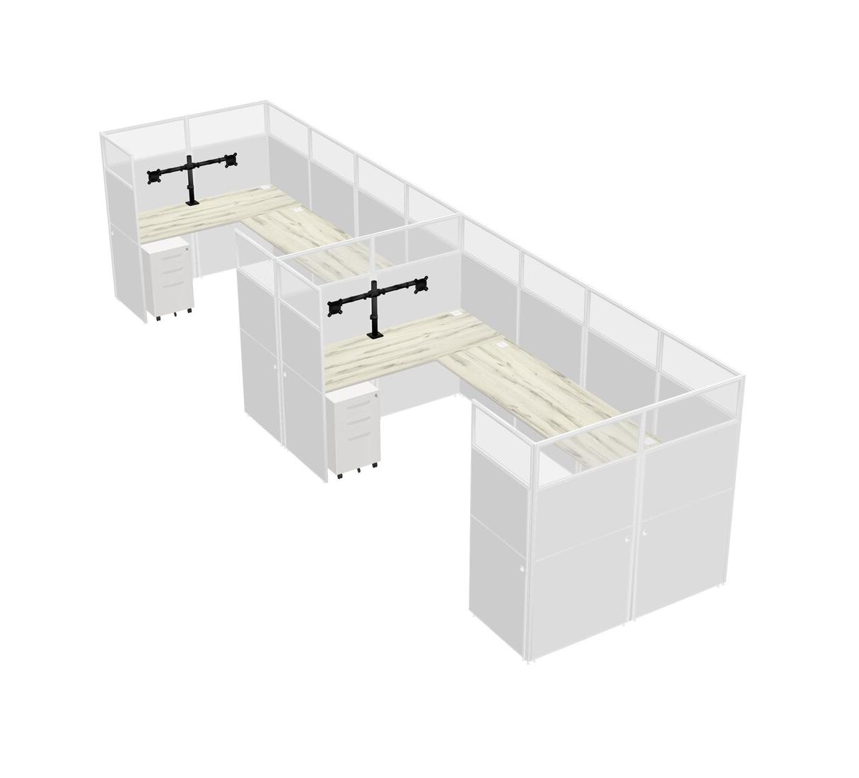 Heinne Holz U-shaped Panel System For 2 Person + Monitor Arm (double Arms) + Metal Mobile Drawers For 2 User(s)