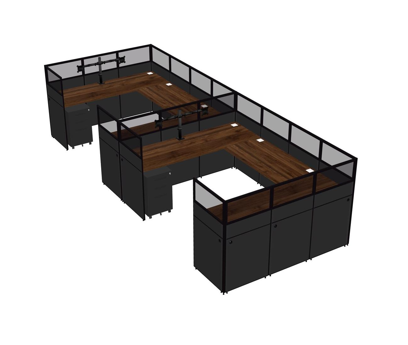 Columbia Walnut U-shaped Panel System For 2 Person + Monitor Arm (double Arms) + Metal Mobile Drawers For 2 User(s)