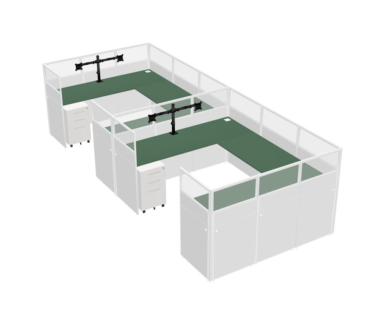 Green U-shaped Panel System For 2 Person + Monitor Arm (double Arms) + Metal Mobile Drawers For 2 User(s)