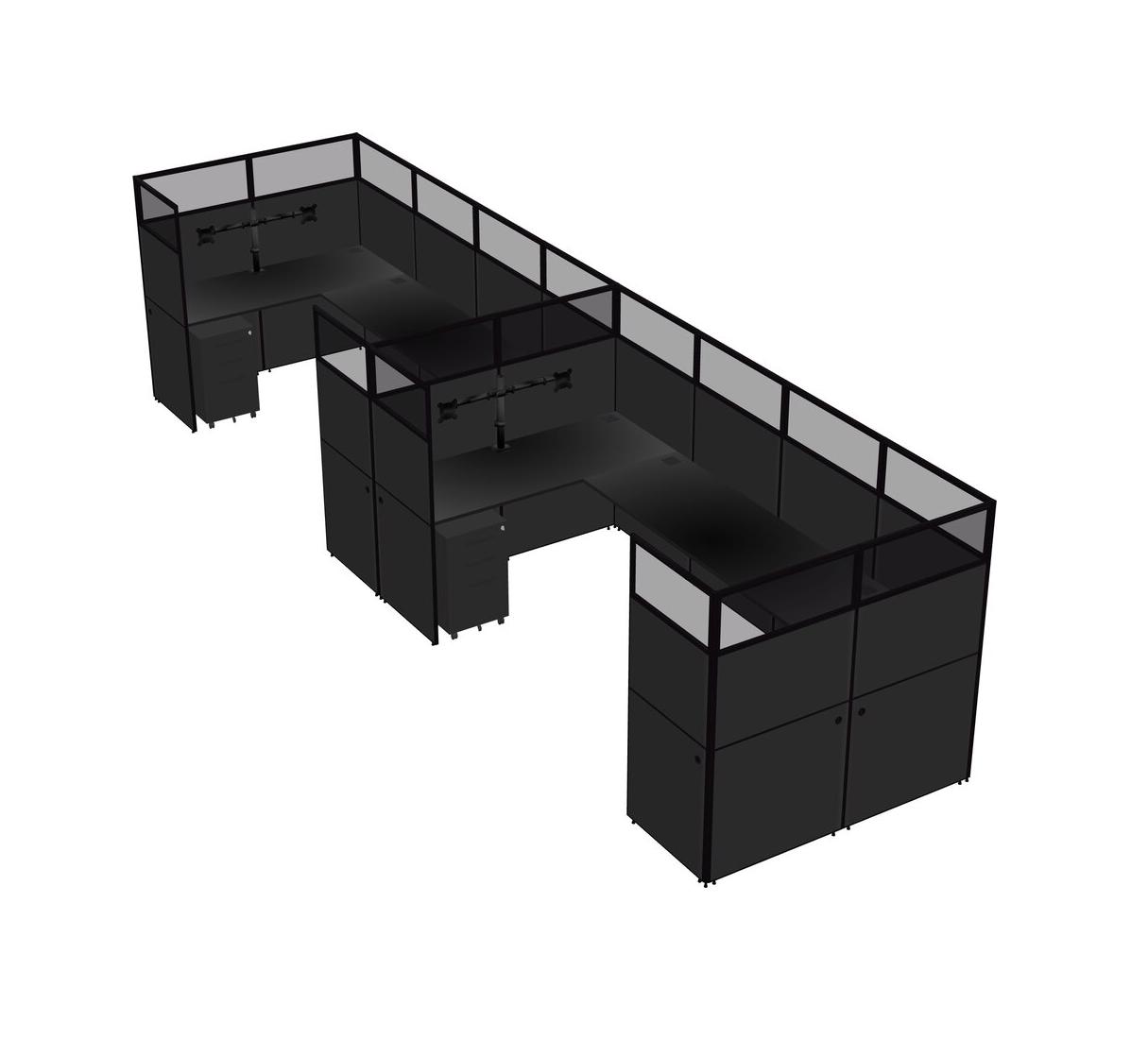 Black U-shaped Panel System For 2 Person + Monitor Arm (double Arms) + Metal Mobile Drawers For 2 User(s)