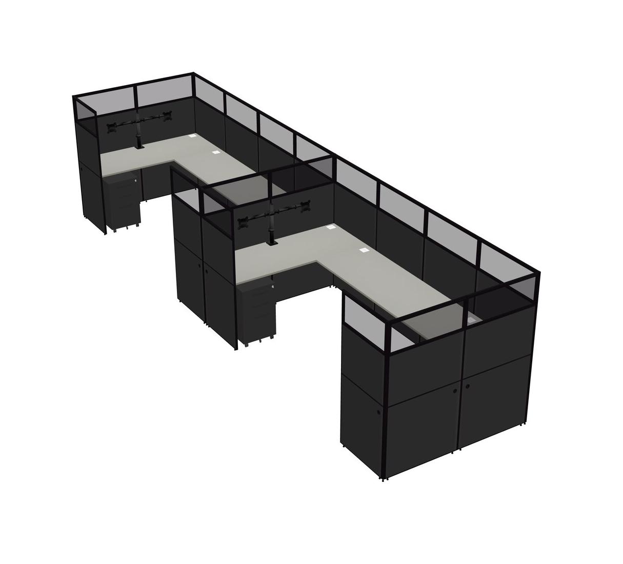 Grey Shadows U-shaped Panel System For 2 Person + Monitor Arm (double Arms) + Metal Mobile Drawers For 2 User(s)