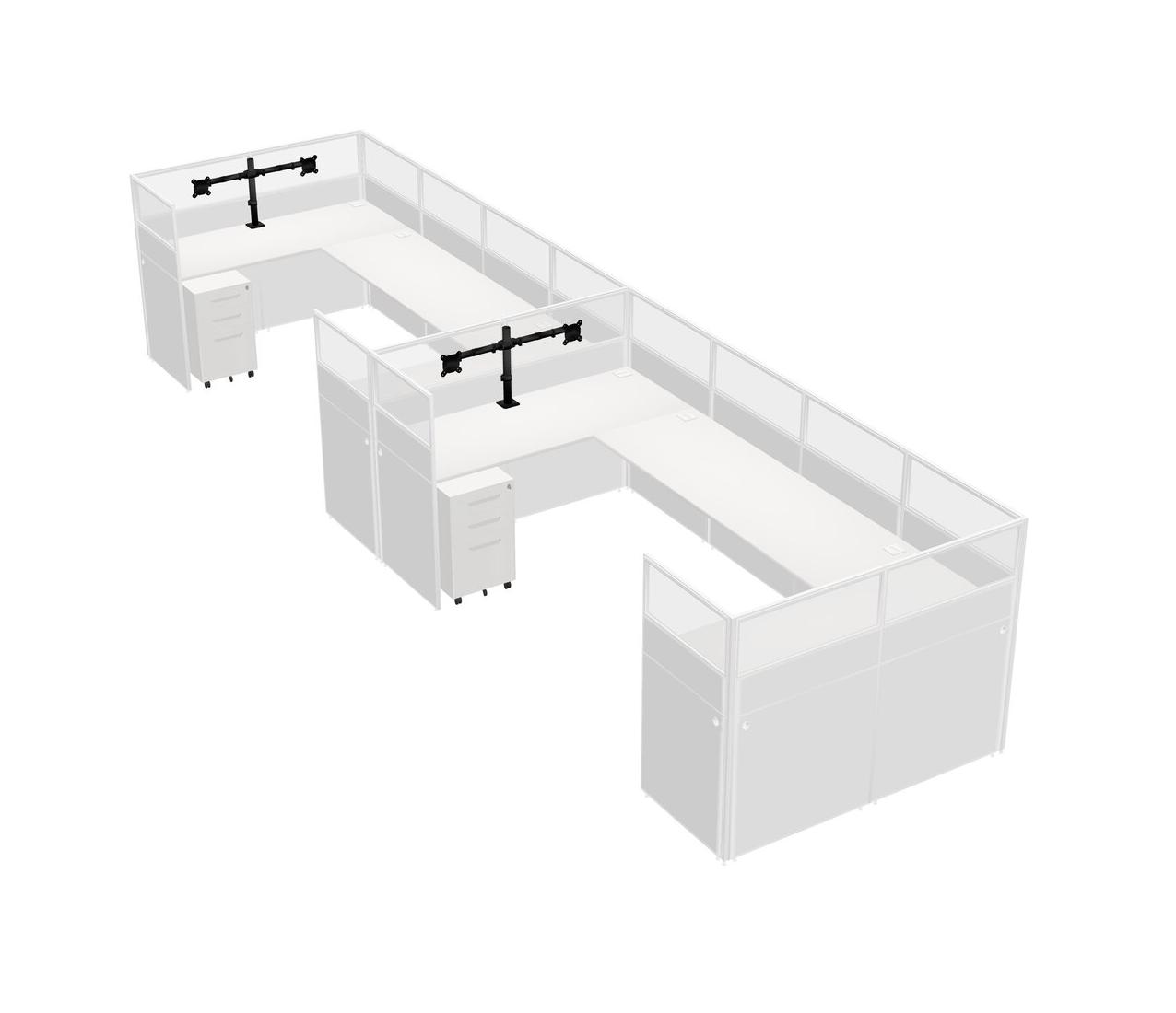White U-shaped Panel System For 2 Person + Monitor Arm (double Arms) + Metal Mobile Drawers For 2 User(s)