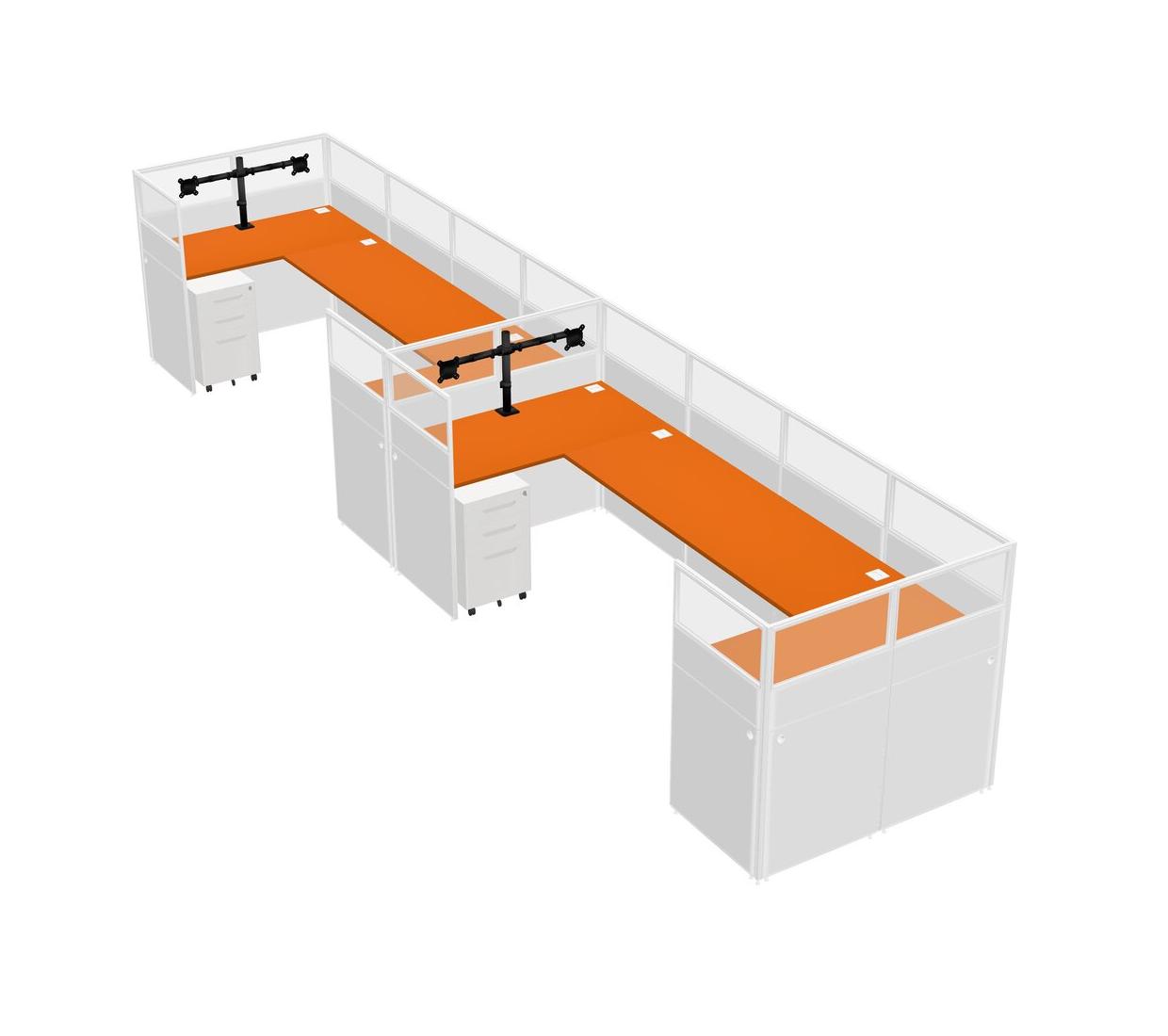 Orange U-shaped Panel System For 2 Person + Monitor Arm (double Arms) + Metal Mobile Drawers For 2 User(s)