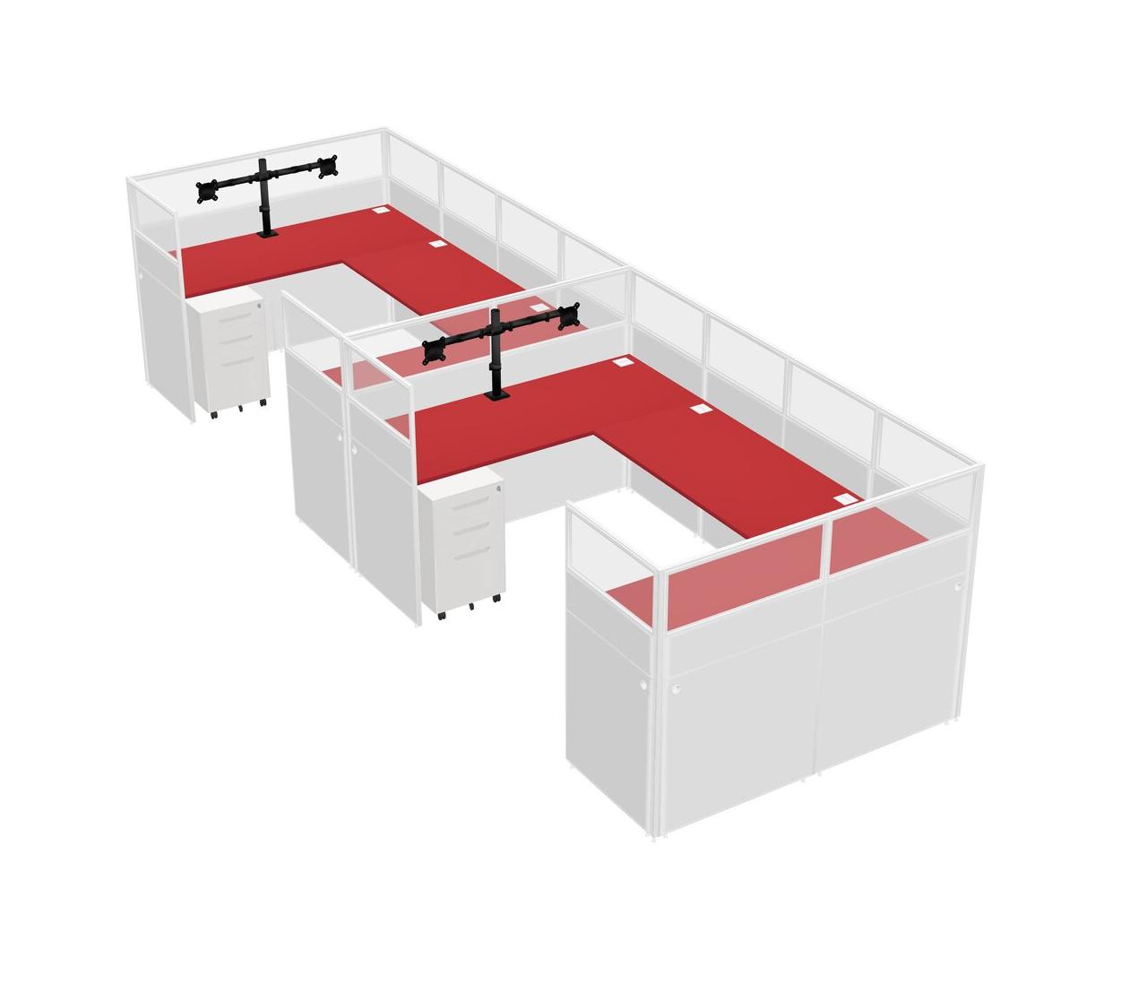 Prism Red U-shaped Panel System For 2 Person + Monitor Arm (double Arms) + Metal Mobile Drawers For 2 User(s)