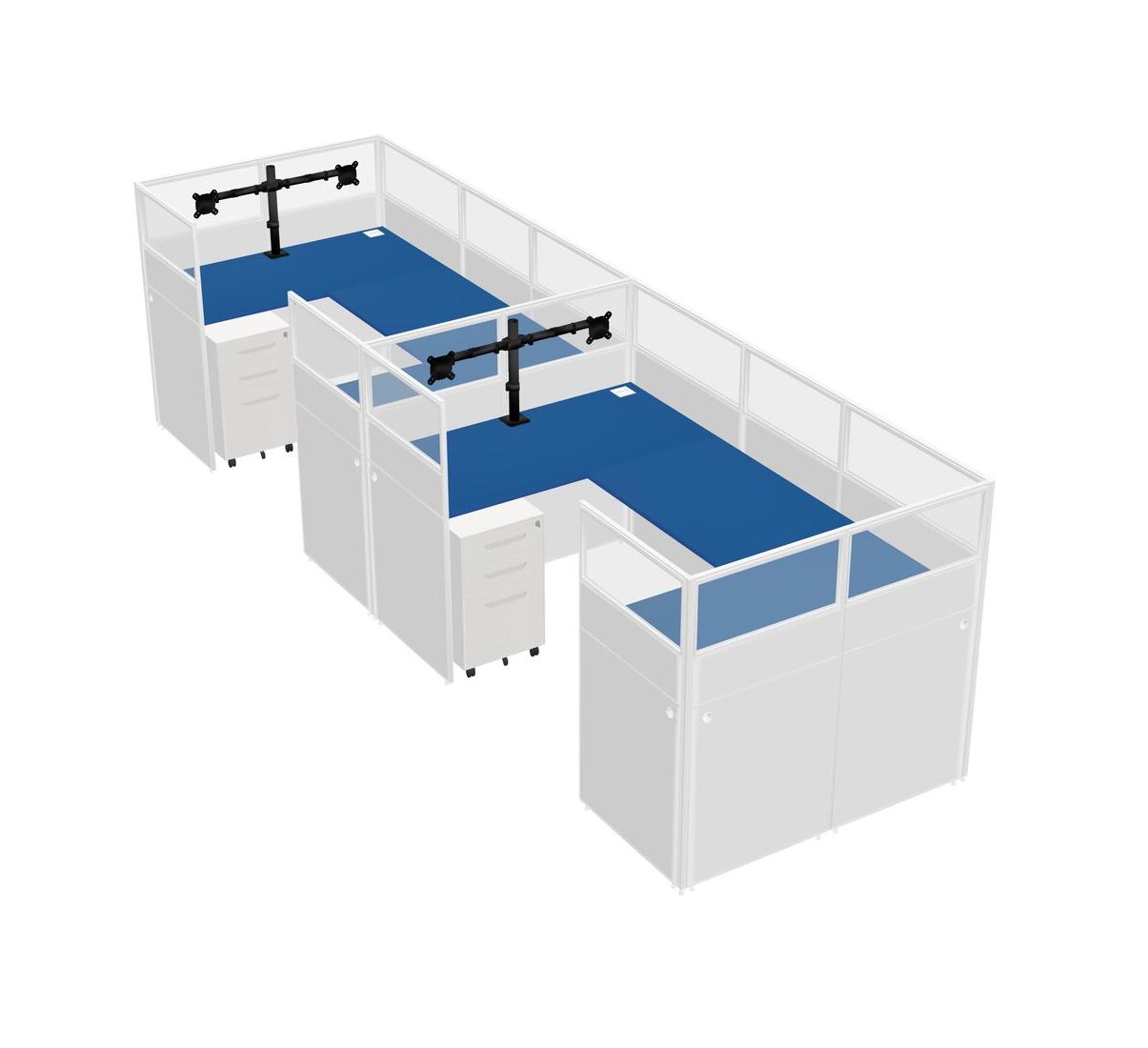 Prism Blue U-shaped Panel System For 2 Person + Monitor Arm (double Arms) + Metal Mobile Drawers For 2 User(s)