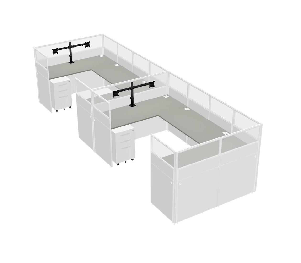 Grey Shadows U-shaped Panel System For 2 Person + Monitor Arm (double Arms) + Metal Mobile Drawers For 2 User(s)