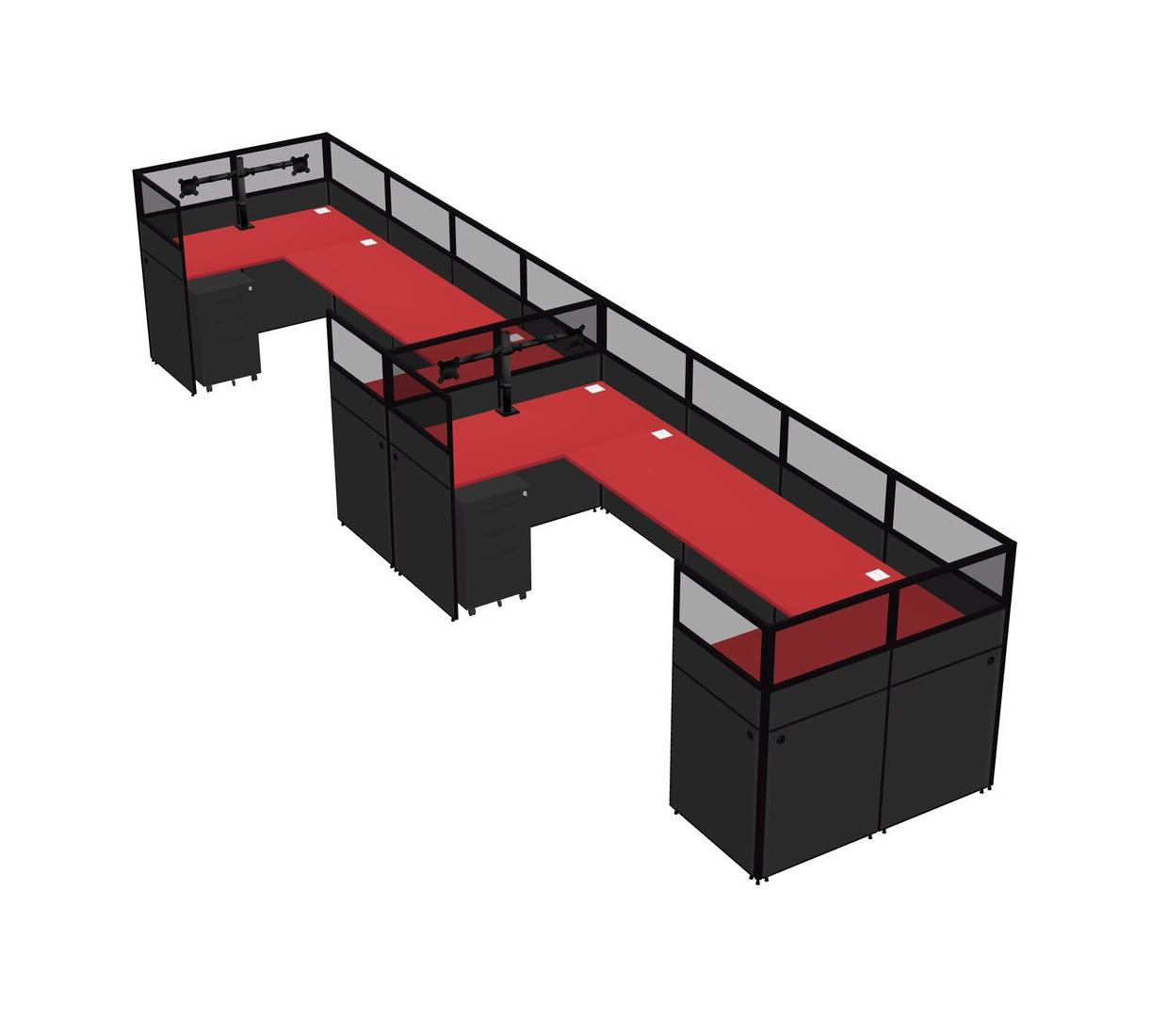 Prism Red U-shaped Panel System For 2 Person + Monitor Arm (double Arms) + Metal Mobile Drawers For 2 User(s)