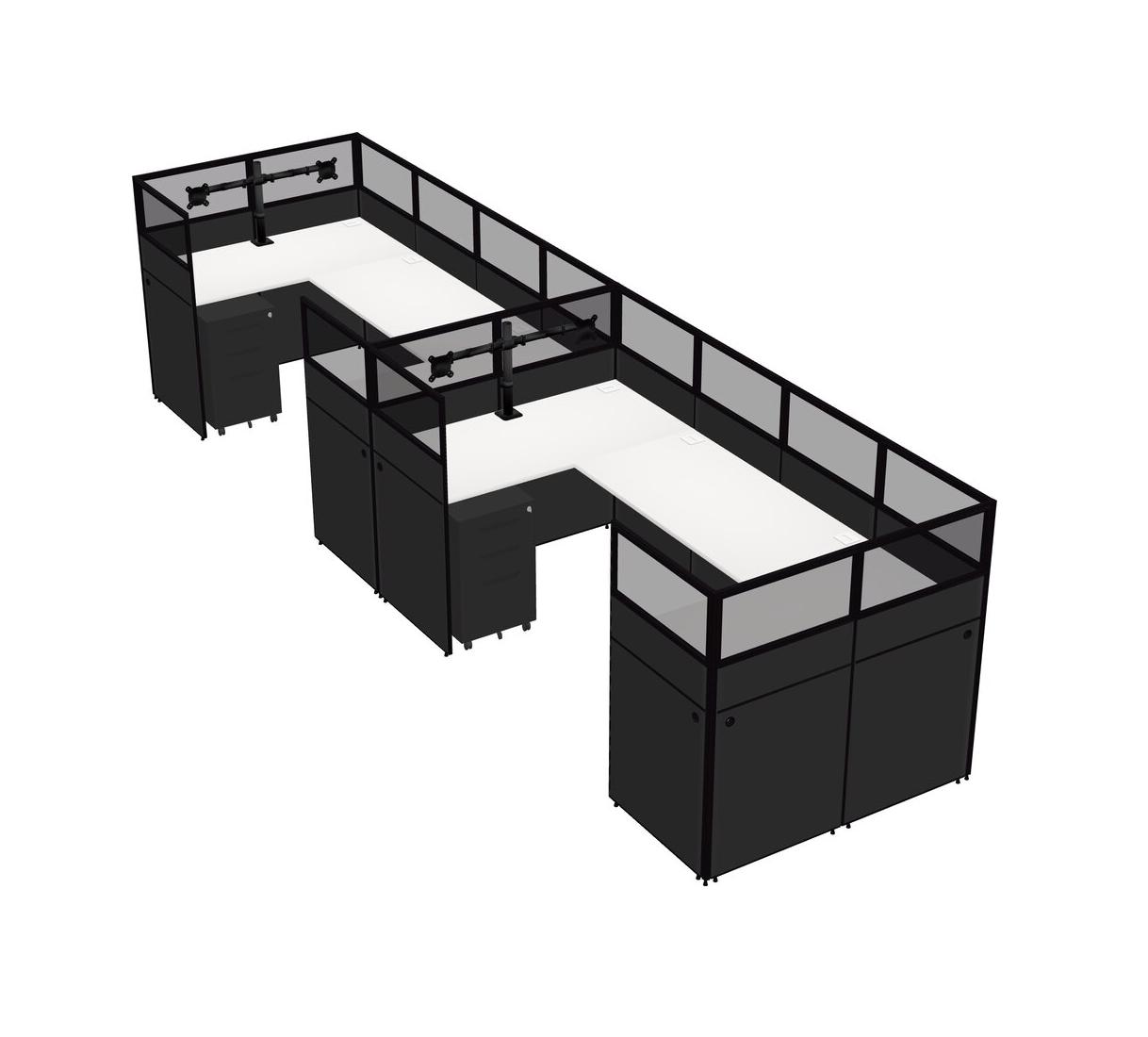 White U-shaped Panel System For 2 Person + Monitor Arm (double Arms) + Metal Mobile Drawers For 2 User(s)
