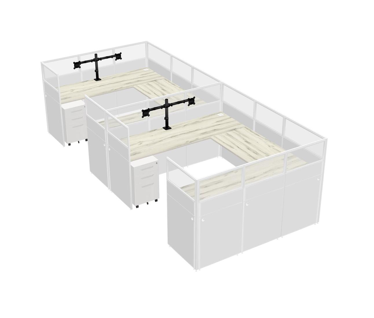 Heinne Holz U-shaped Panel System For 2 Person + Monitor Arm (double Arms) + Metal Mobile Drawers For 2 User(s)