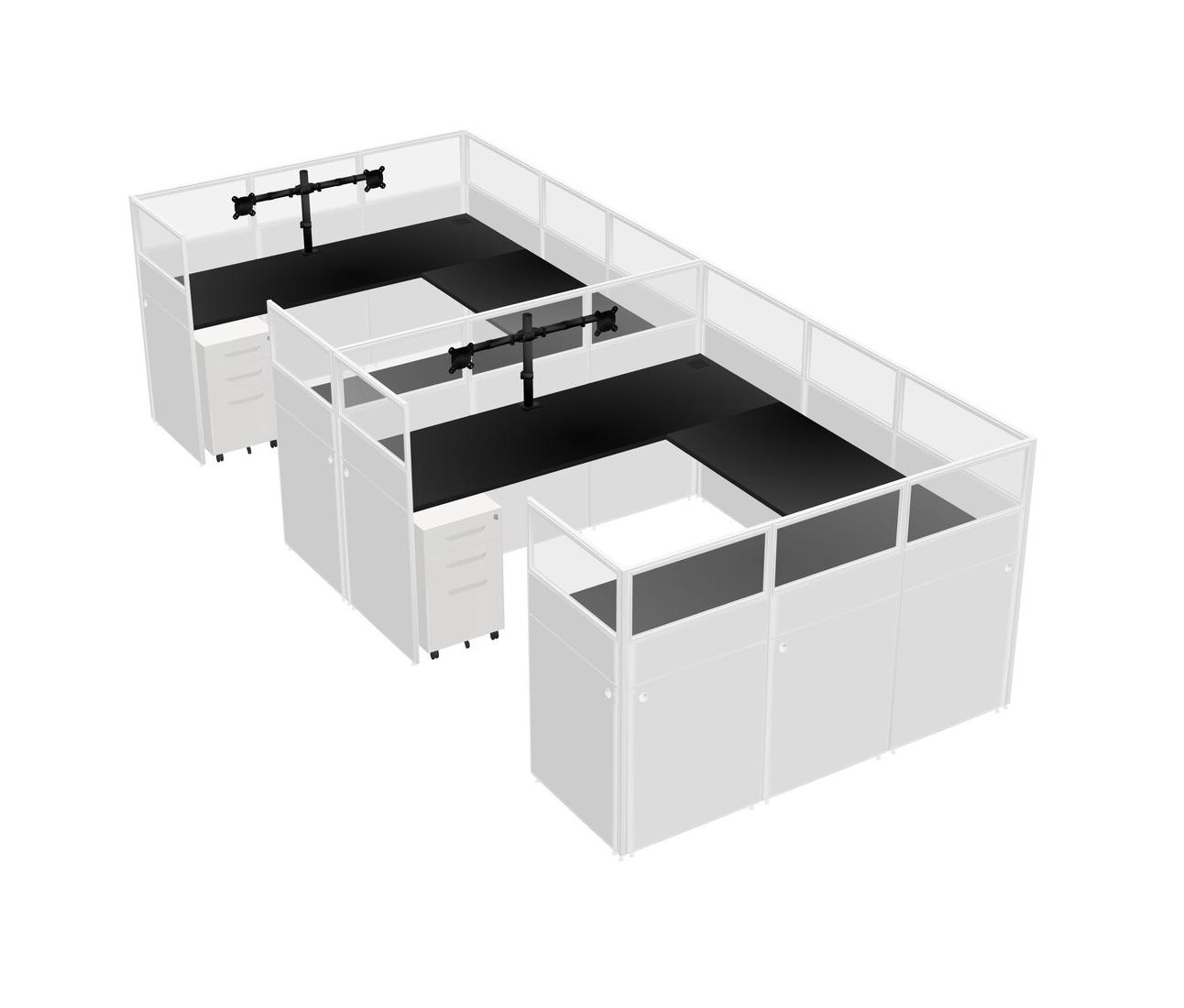 Black U-shaped Panel System For 2 Person + Monitor Arm (double Arms) + Metal Mobile Drawers For 2 User(s)