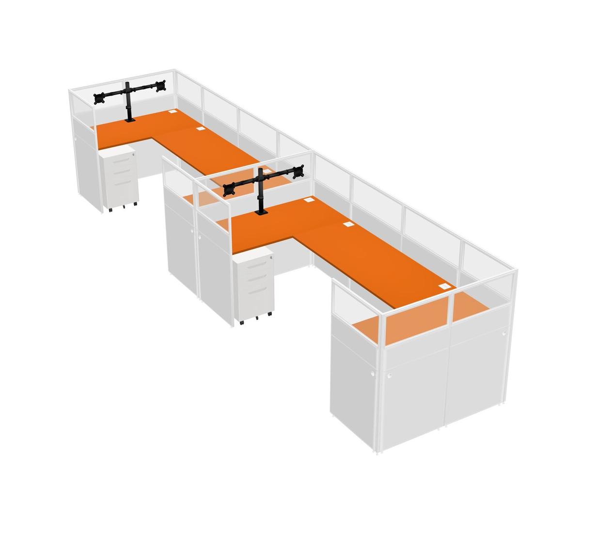 Orange U-shaped Panel System For 2 Person + Monitor Arm (double Arms) + Metal Mobile Drawers For 2 User(s)