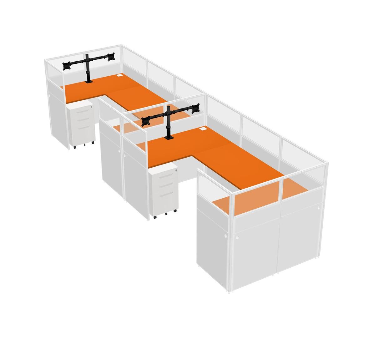 Orange U-shaped Panel System For 2 Person + Monitor Arm (double Arms) + Metal Mobile Drawers For 2 User(s)