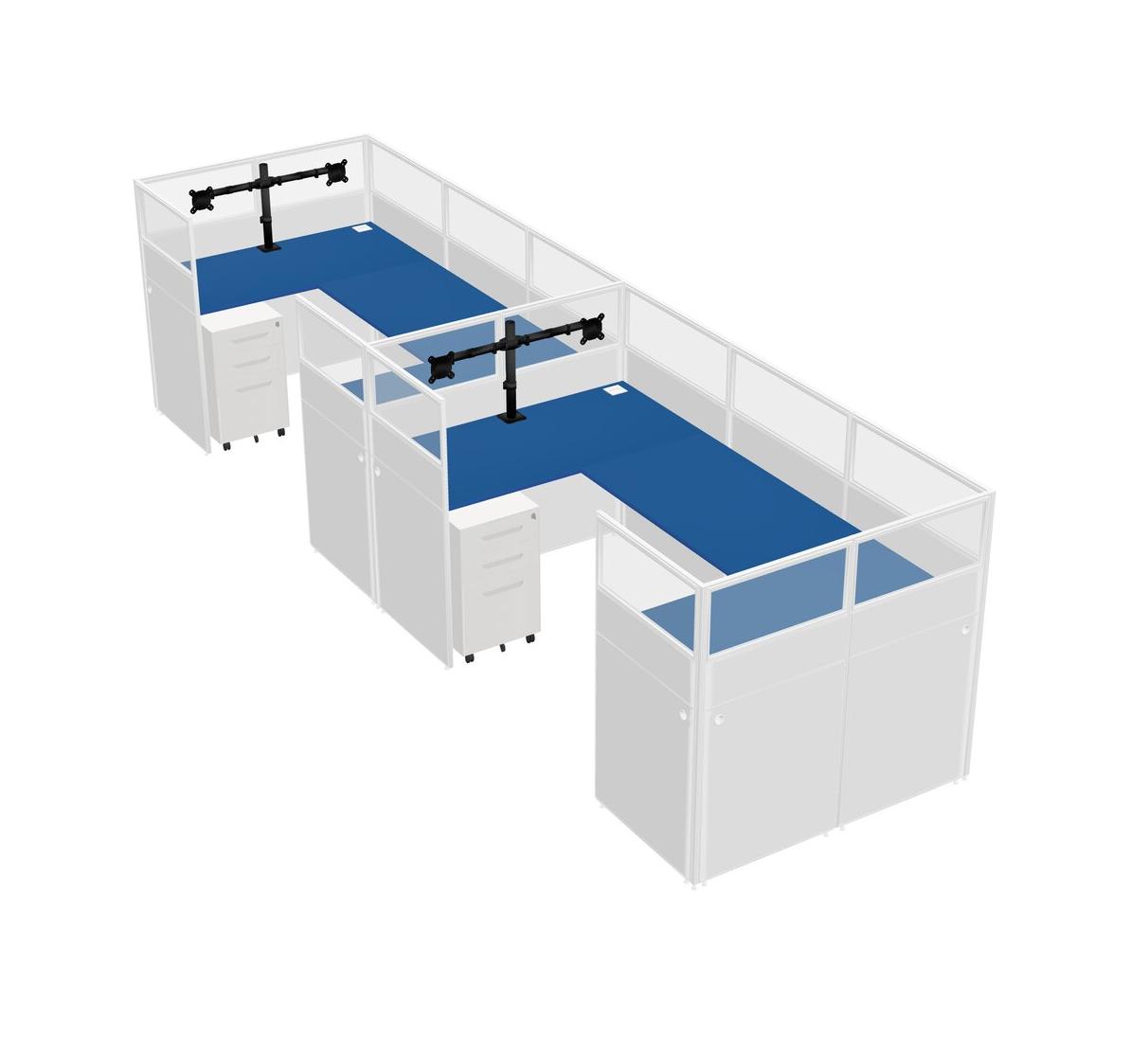 Prism Blue U-shaped Panel System For 2 Person + Monitor Arm (double Arms) + Metal Mobile Drawers For 2 User(s)