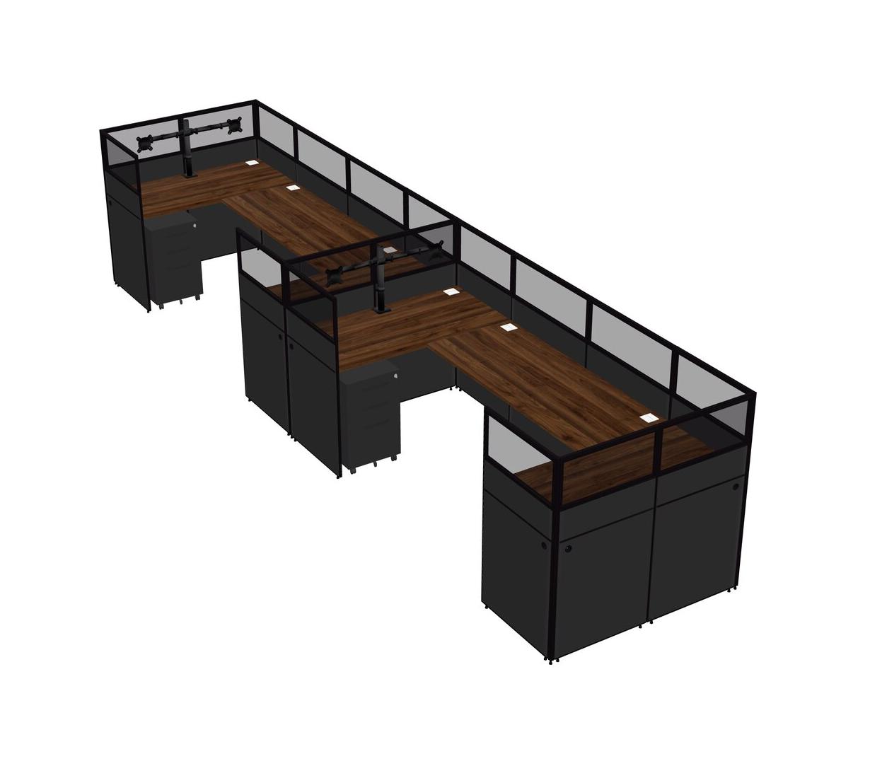 Columbia Walnut U-shaped Panel System For 2 Person + Monitor Arm (double Arms) + Metal Mobile Drawers For 2 User(s)