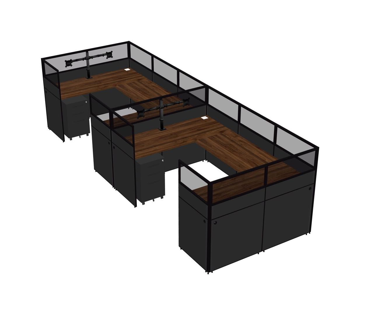 Columbia Walnut U-shaped Panel System For 2 Person + Monitor Arm (double Arms) + Metal Mobile Drawers For 2 User(s)