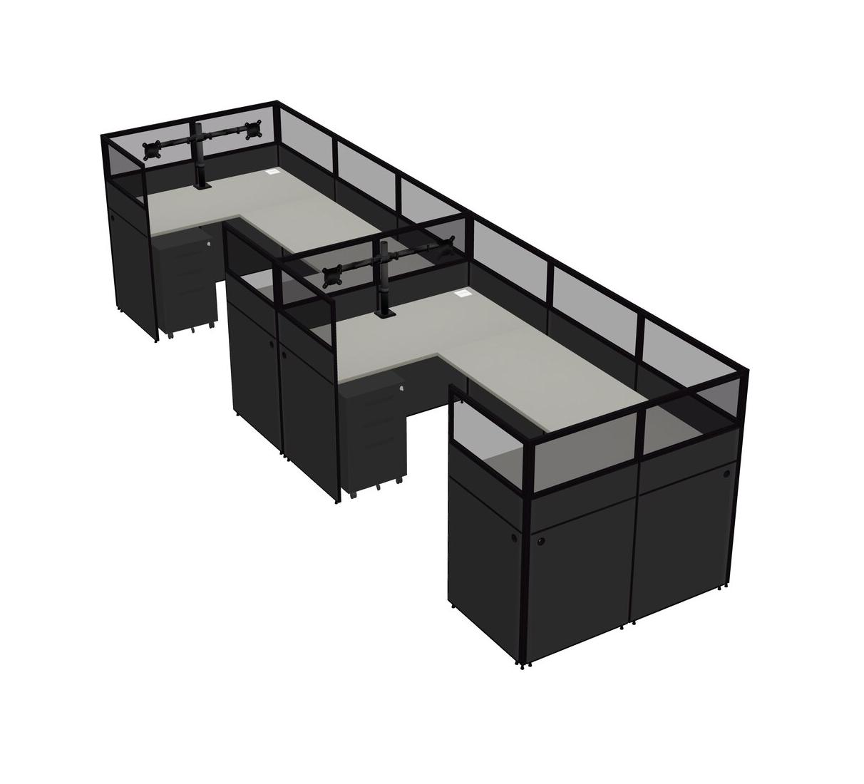 Grey Shadows U-shaped Panel System For 2 Person + Monitor Arm (double Arms) + Metal Mobile Drawers For 2 User(s)
