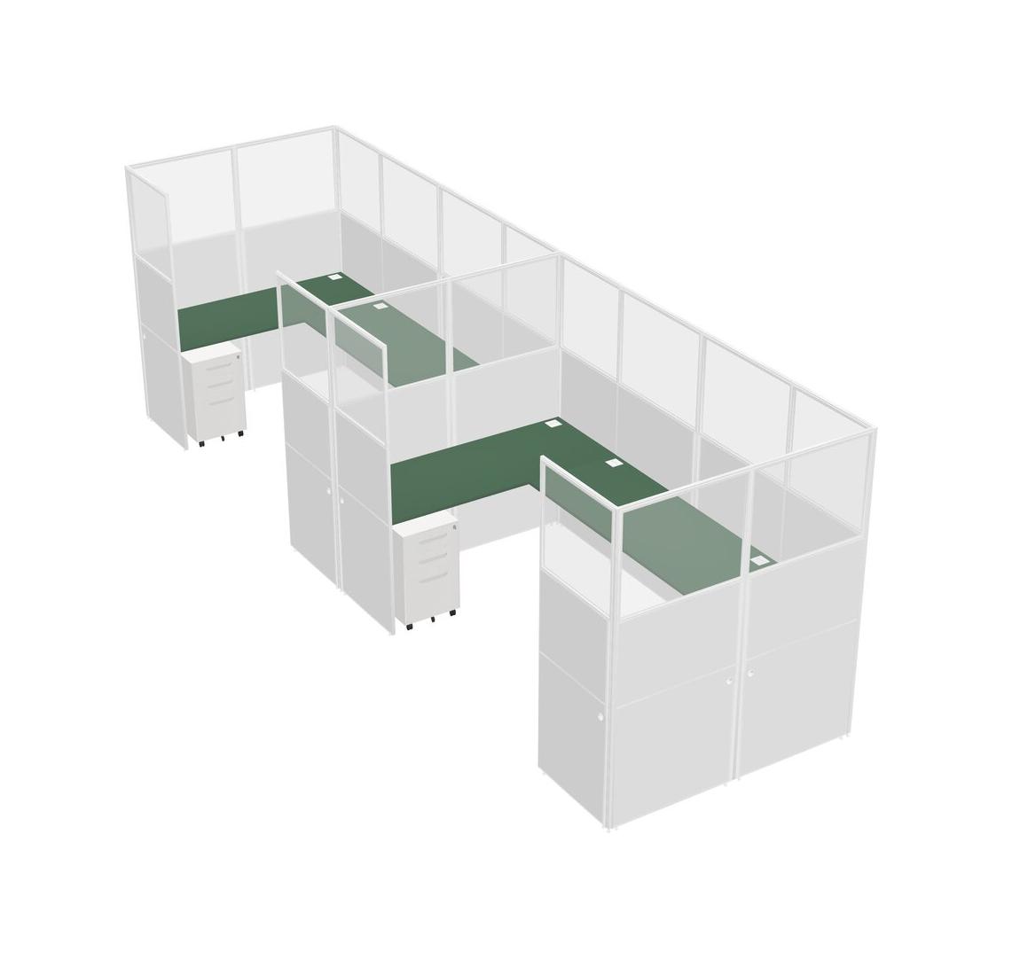 Green U-shaped Panel System For 2 Person + Metal Mobile Drawers For 2 User(s)