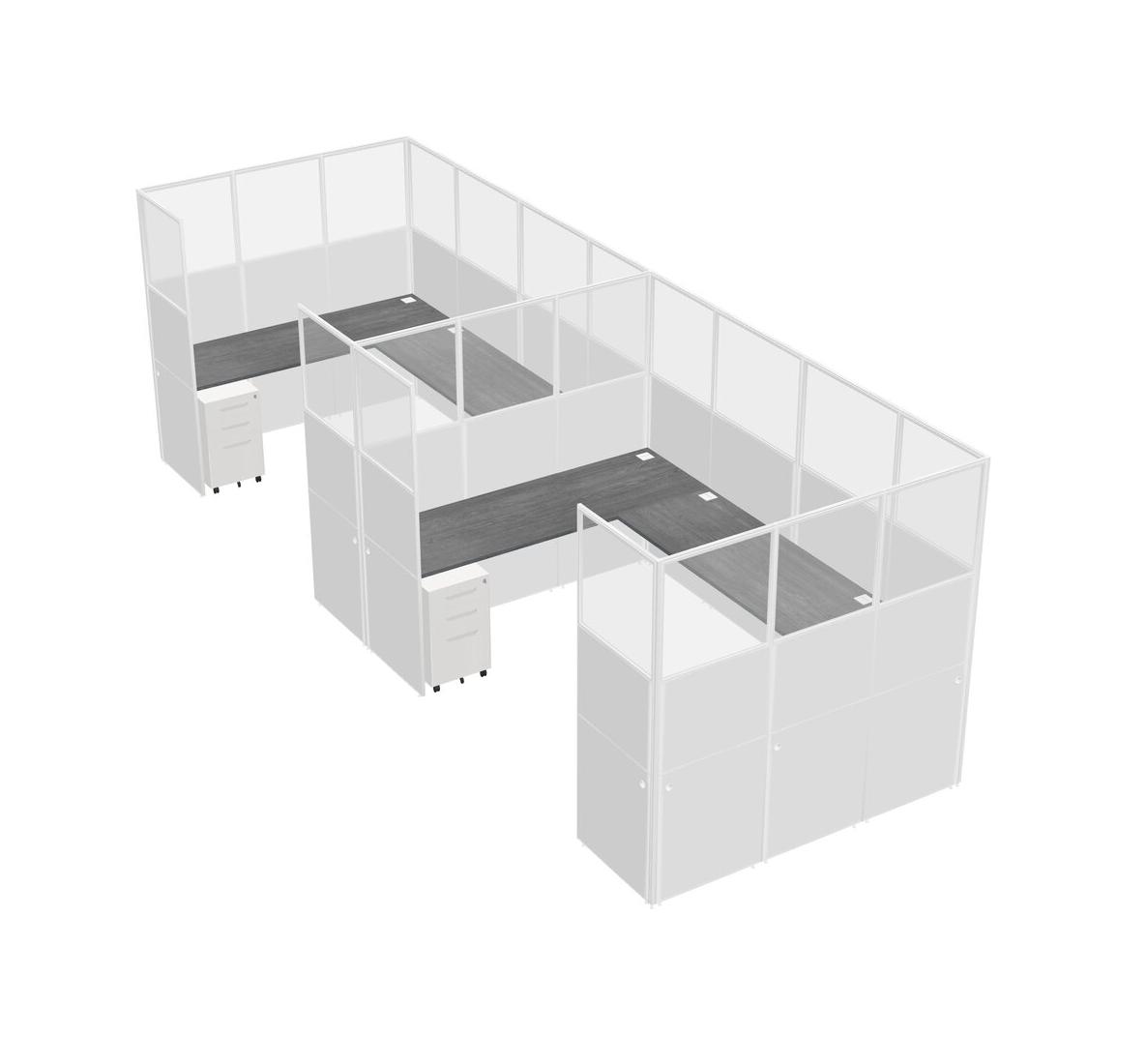 Grey U-shaped Panel System For 2 Person + Metal Mobile Drawers For 2 User(s)