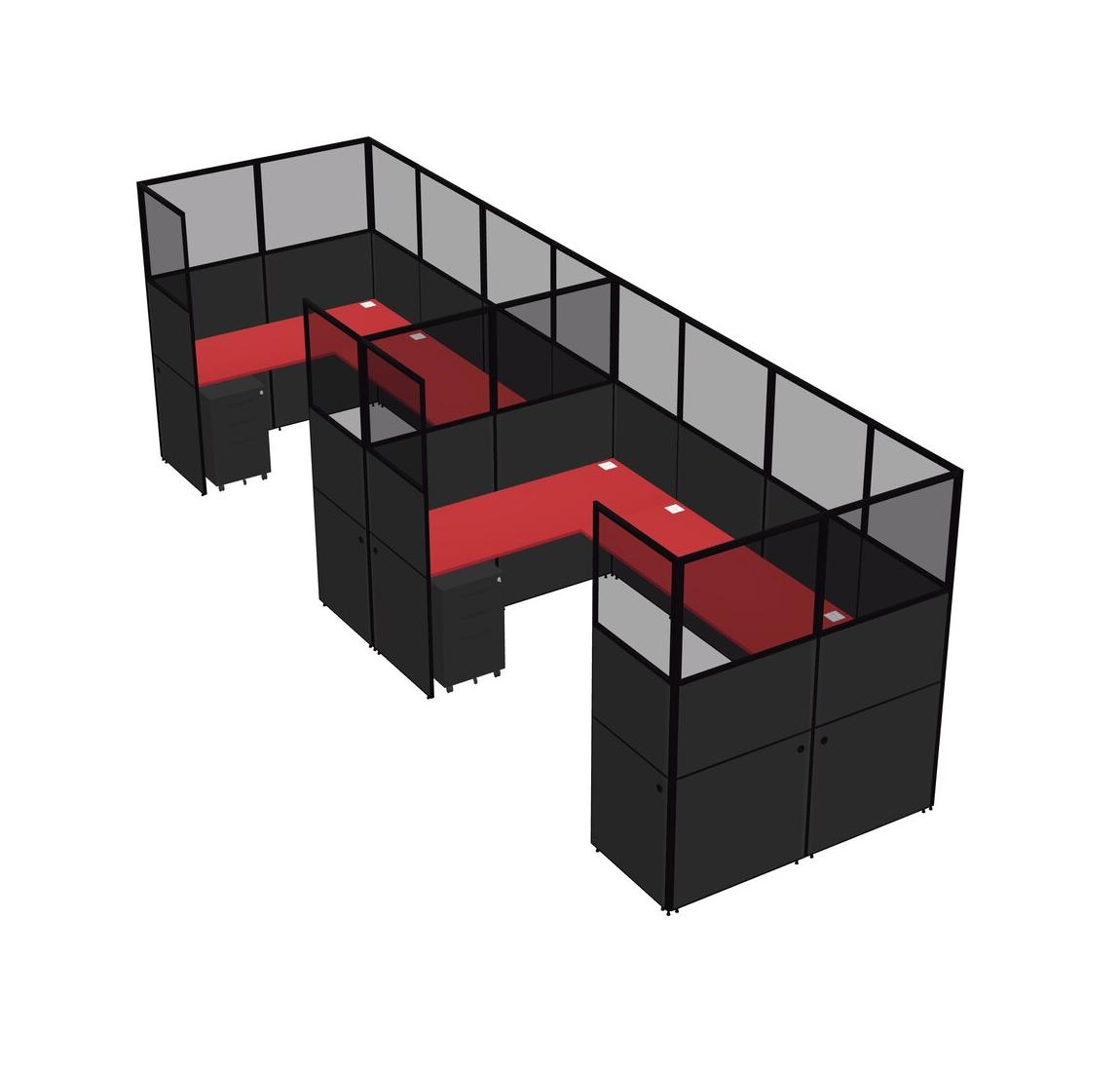 Prism Red U-shaped Panel System For 2 Person + Metal Mobile Drawers For 2 User(s)