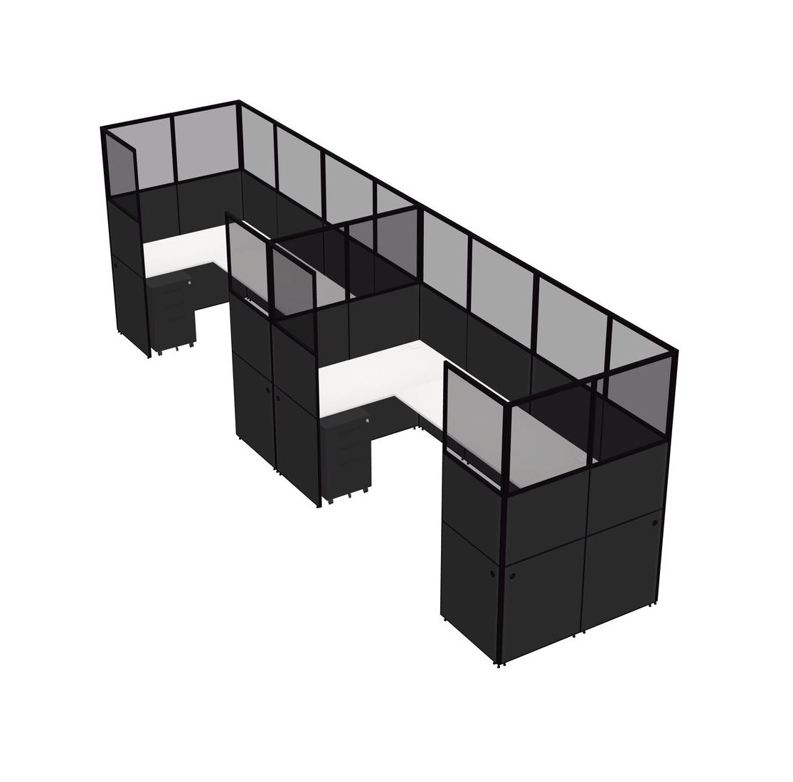 White U-shaped Panel System For 2 Person + Metal Mobile Drawers For 2 User(s)