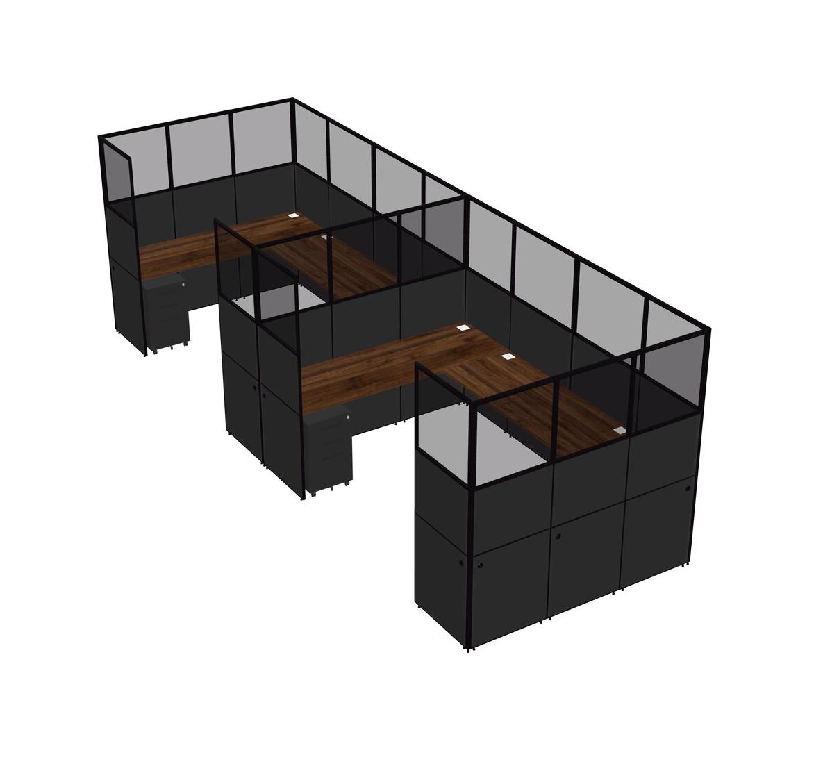 Columbia Walnut U-shaped Panel System For 2 Person + Metal Mobile Drawers For 2 User(s)