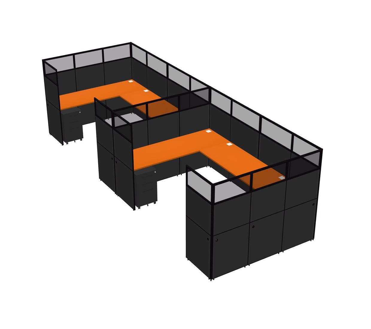 Orange U-shaped Panel System For 2 Person + Metal Mobile Drawers For 2 User(s)