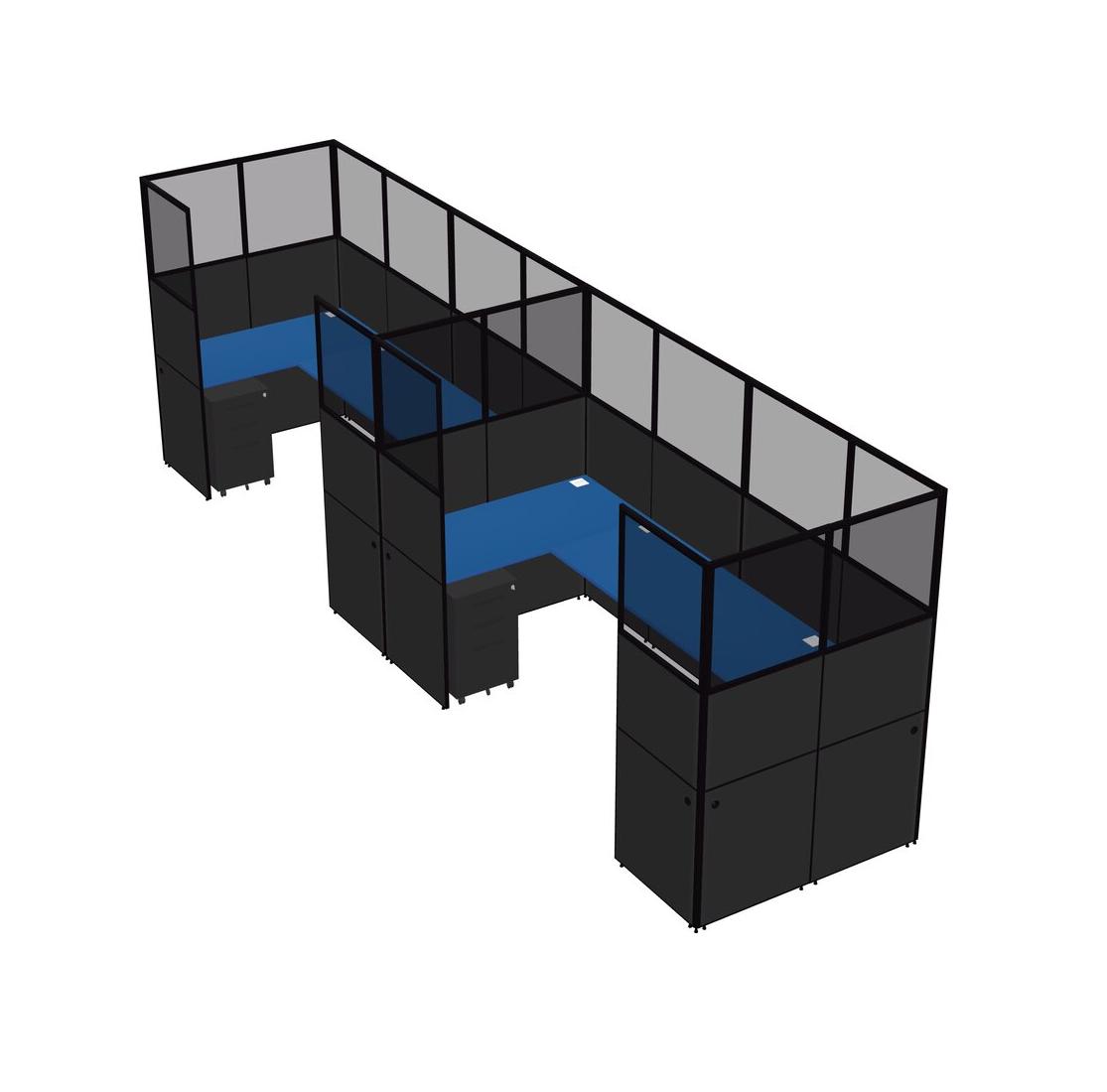 Prism Blue U-shaped Panel System For 2 Person + Metal Mobile Drawers For 2 User(s)