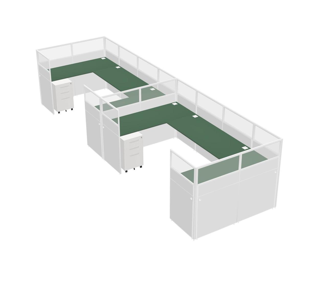 Green U-shaped Panel System For 2 Person + Metal Mobile Drawers For 2 User(s)