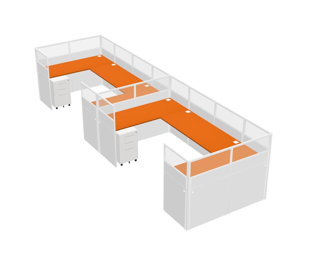 Orange U-shaped Panel System For 2 Person + Metal Mobile Drawers For 2 User(s)