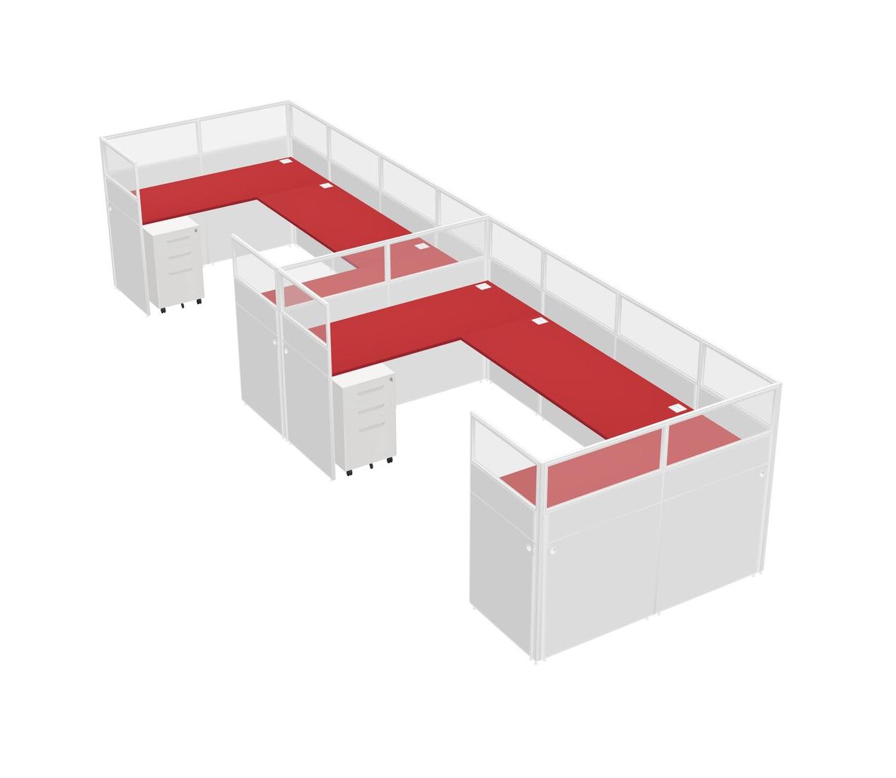 Prism Red U-shaped Panel System For 2 Person + Metal Mobile Drawers For 2 User(s)