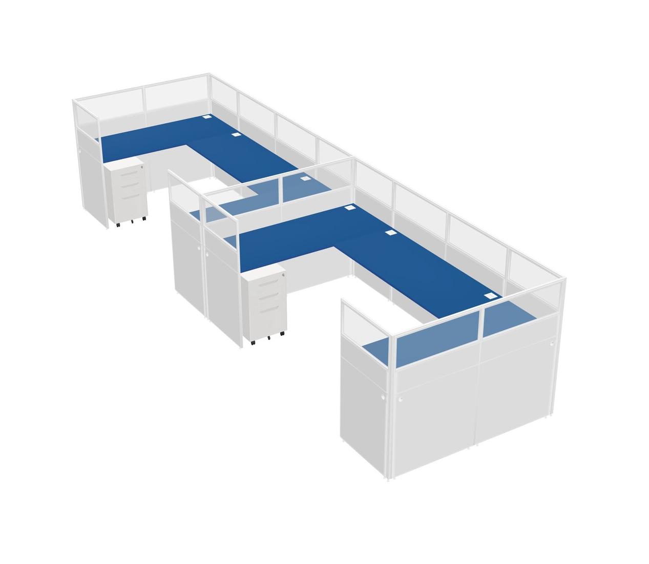 Prism Blue U-shaped Panel System For 2 Person + Metal Mobile Drawers For 2 User(s)