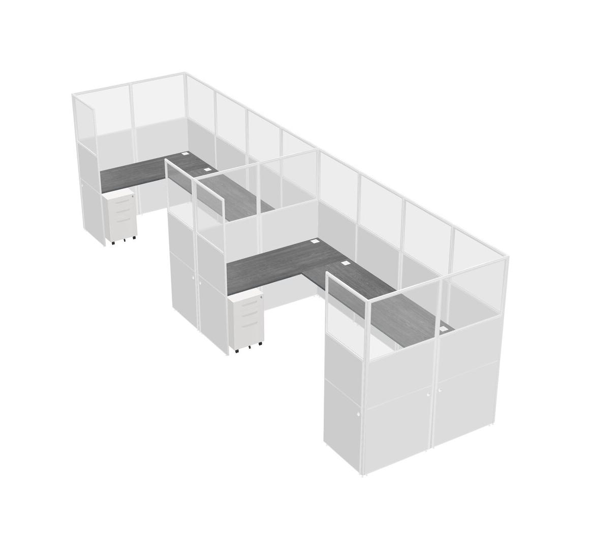 Grey U-shaped Panel System For 2 Person + Metal Mobile Drawers For 2 User(s)