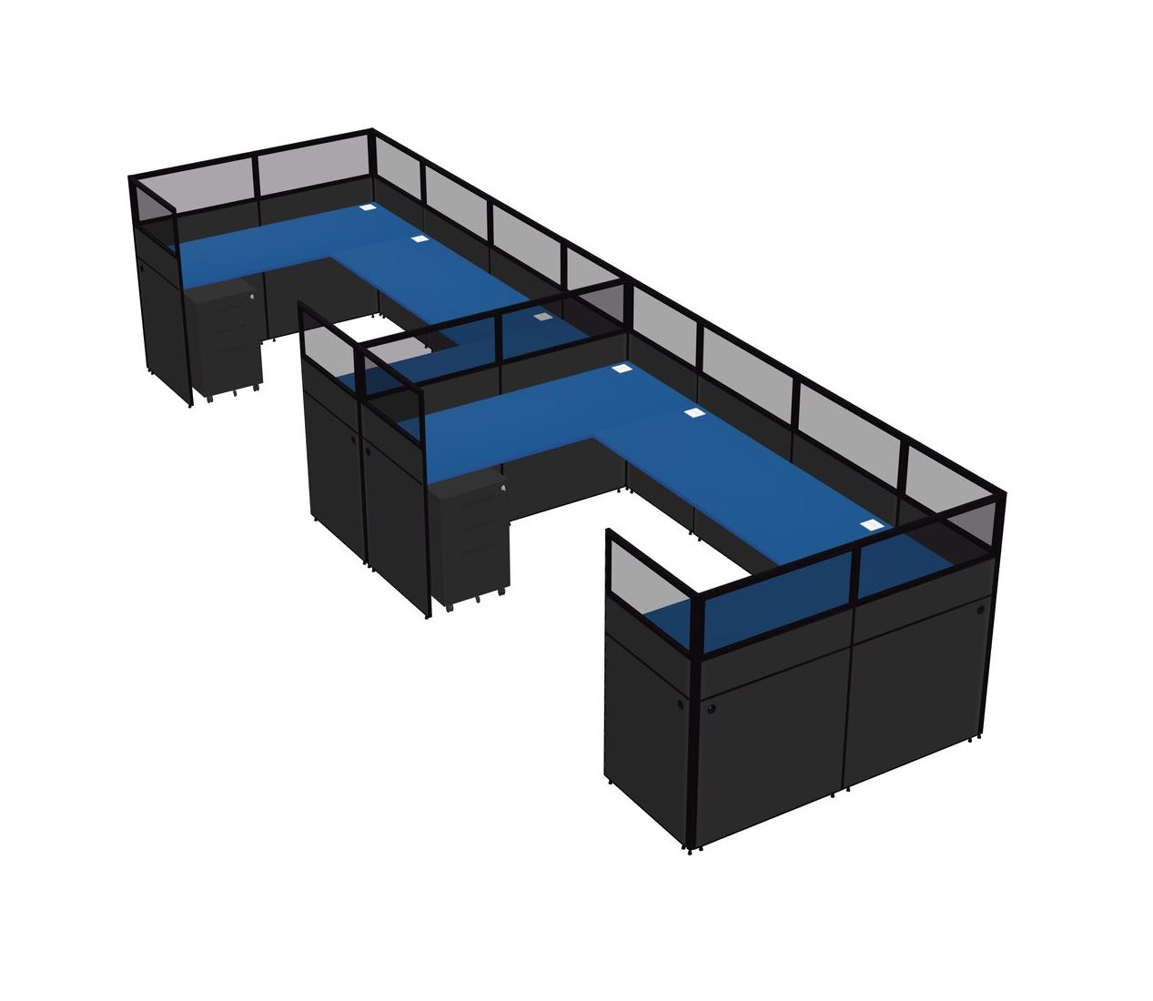 Prism Blue U-shaped Panel System For 2 Person + Metal Mobile Drawers For 2 User(s)