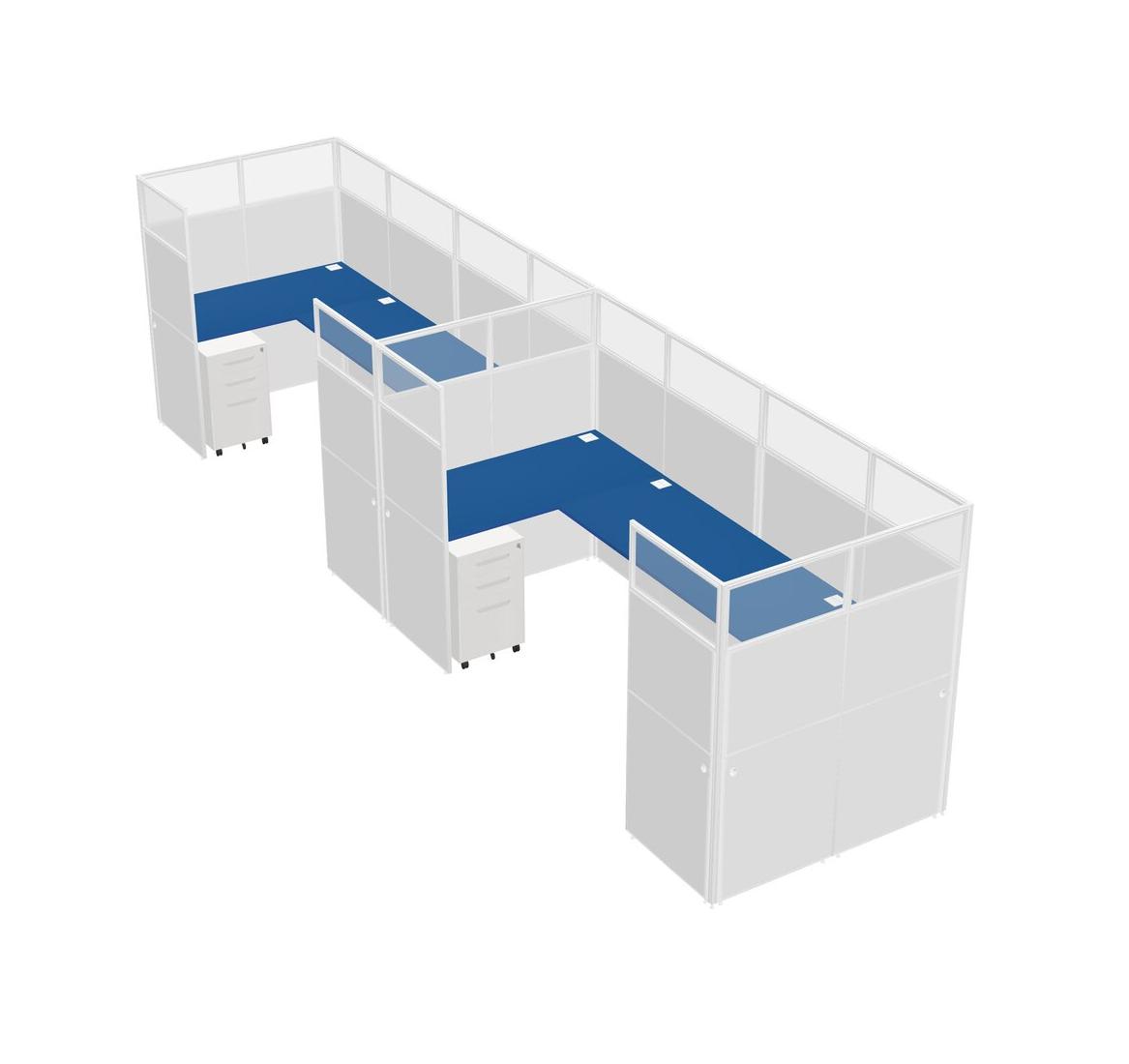 Prism Blue U-shaped Panel System For 2 Person + Metal Mobile Drawers For 2 User(s)