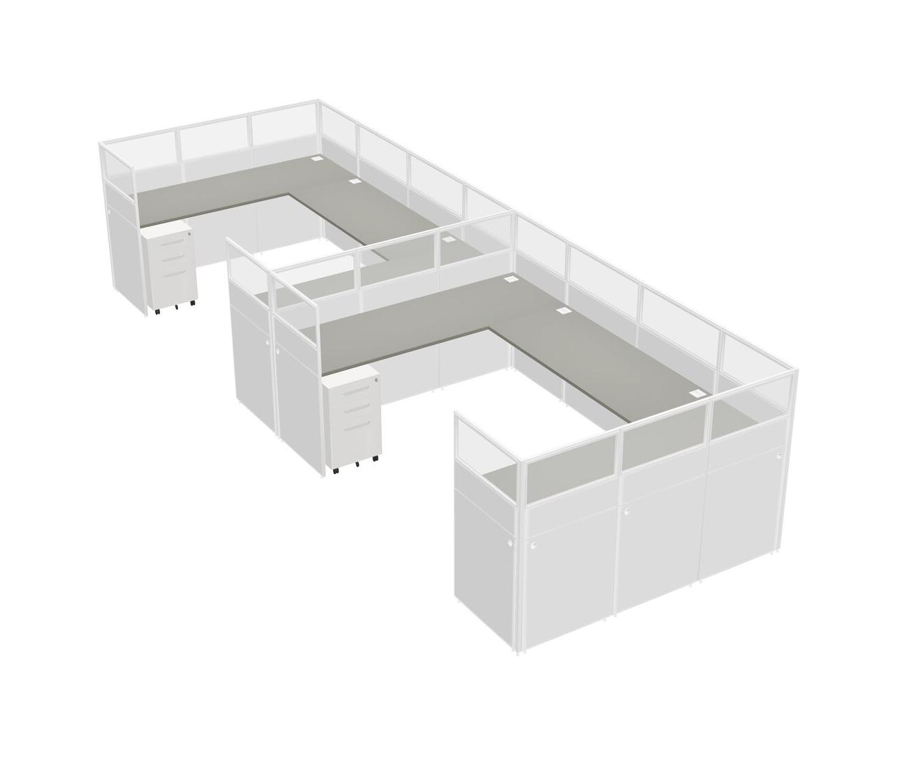 Grey Shadows U-shaped Panel System For 2 Person + Metal Mobile Drawers For 2 User(s)