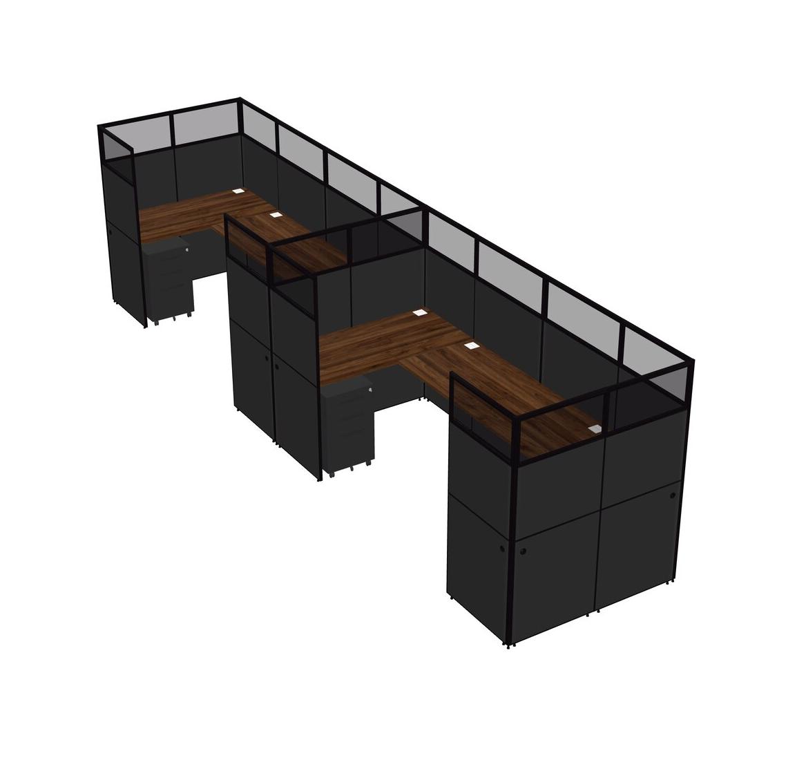 Columbia Walnut U-shaped Panel System For 2 Person + Metal Mobile Drawers For 2 User(s)