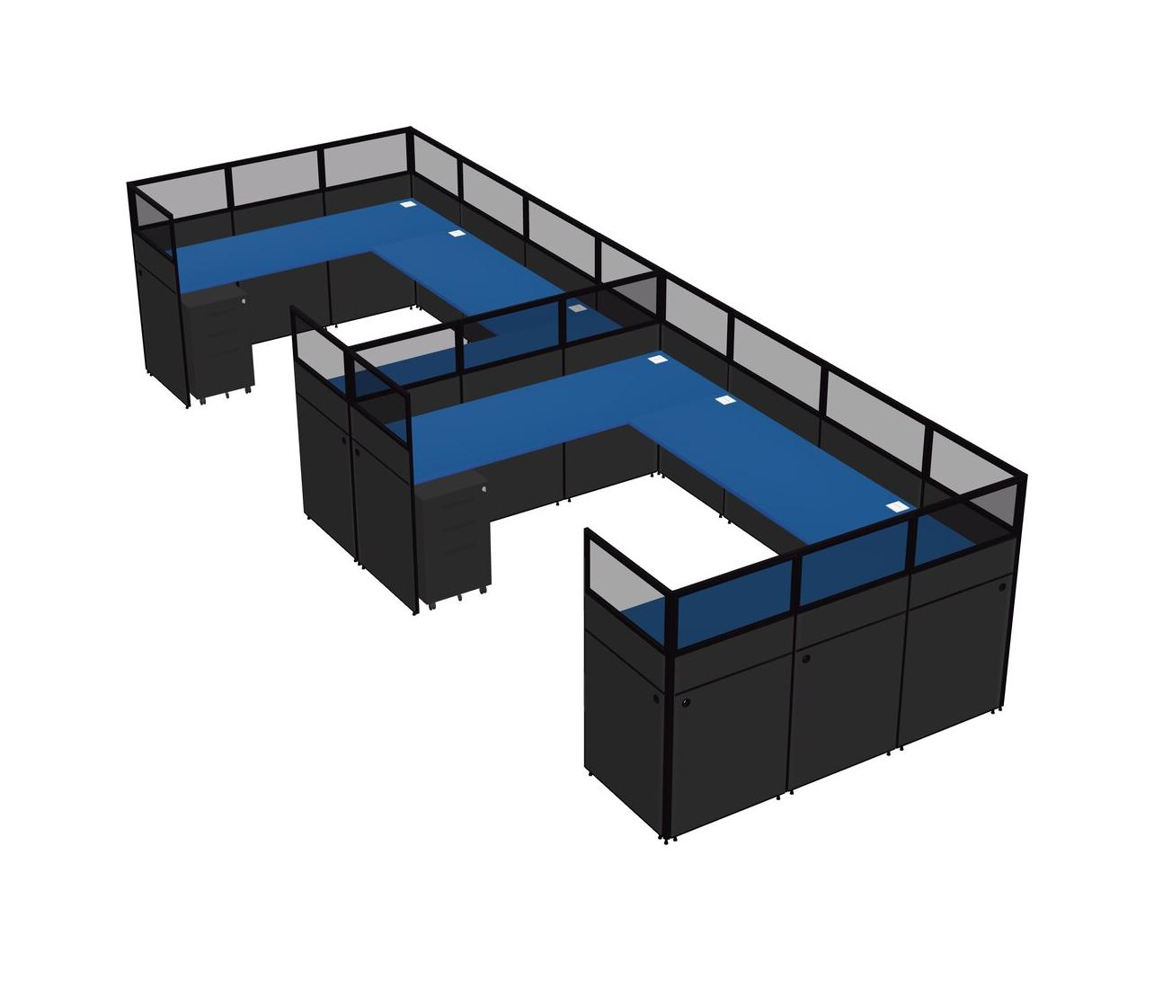 Prism Blue U-shaped Panel System For 2 Person + Metal Mobile Drawers For 2 User(s)