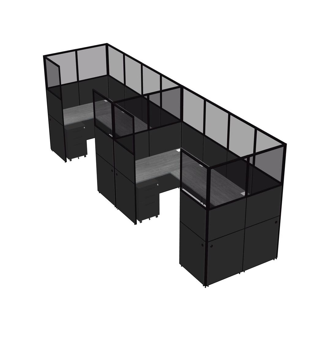 Grey U-shaped Panel System For 2 Person + Metal Mobile Drawers For 2 User(s)