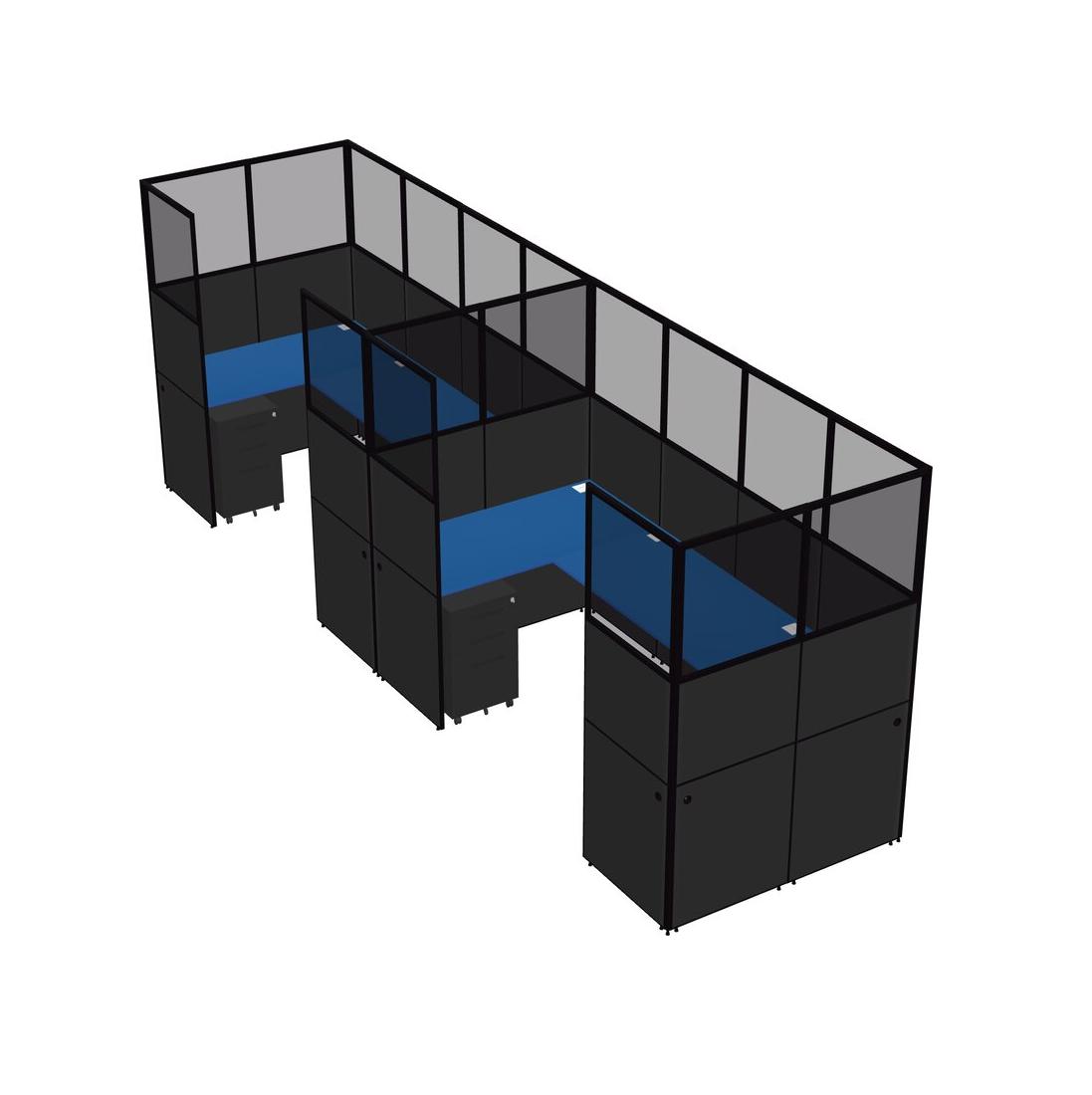 Prism Blue U-shaped Panel System For 2 Person + Metal Mobile Drawers For 2 User(s)