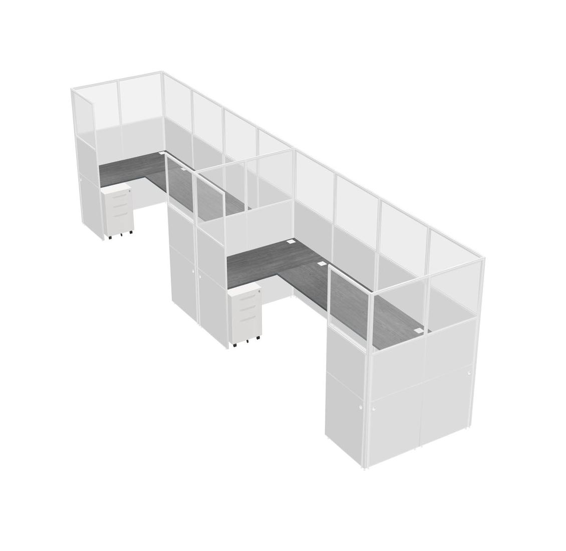 Grey U-shaped Panel System For 2 Person + Metal Mobile Drawers For 2 User(s)