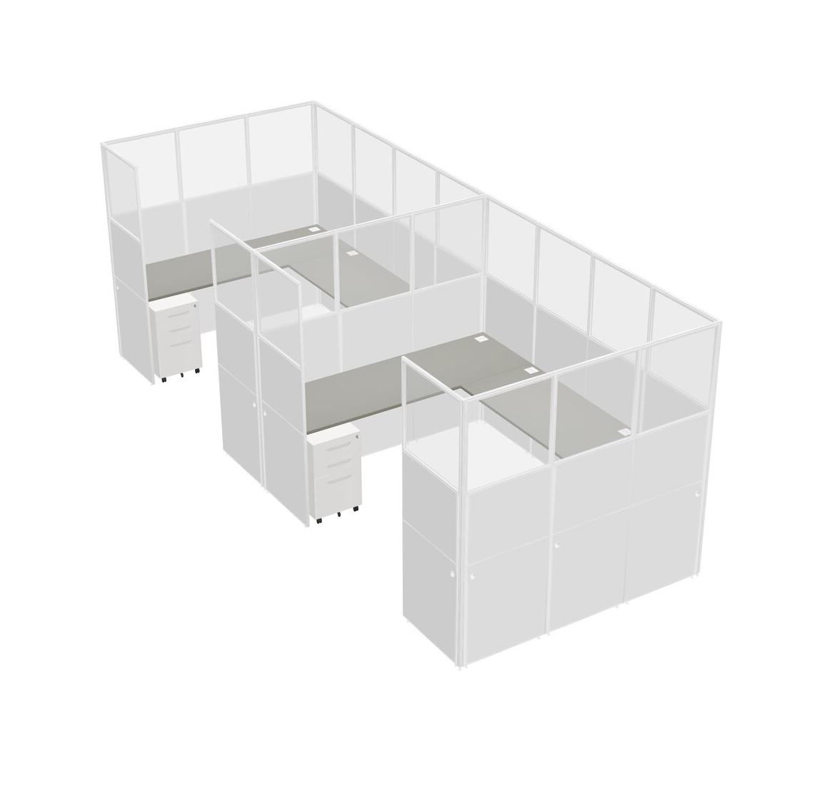 Grey Shadows U-shaped Panel System For 2 Person + Metal Mobile Drawers For 2 User(s)