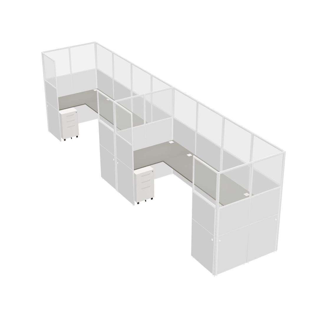 Grey Shadows U-shaped Panel System For 2 Person + Metal Mobile Drawers For 2 User(s)