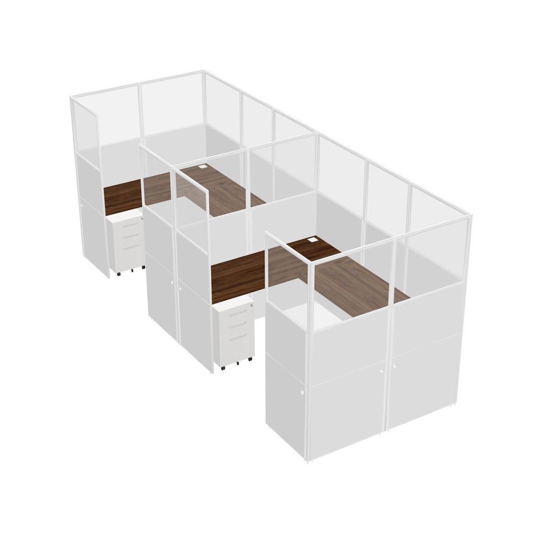 Columbia Walnut U-shaped Panel System For 2 Person + Metal Mobile Drawers For 2 User(s)