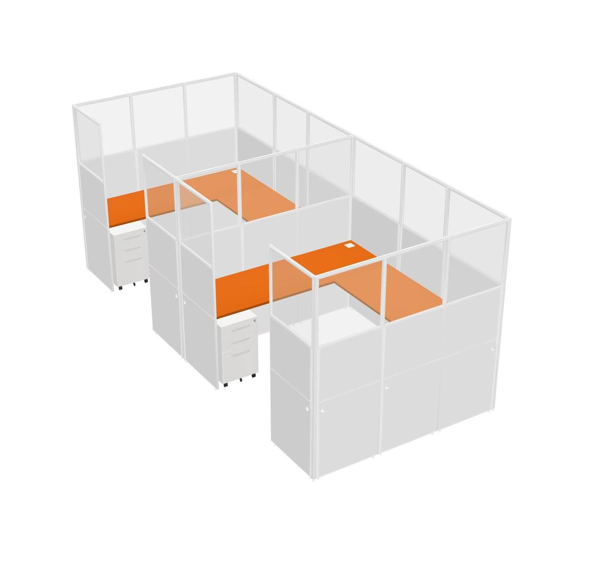 Orange U-shaped Panel System For 2 Person + Metal Mobile Drawers For 2 User(s)