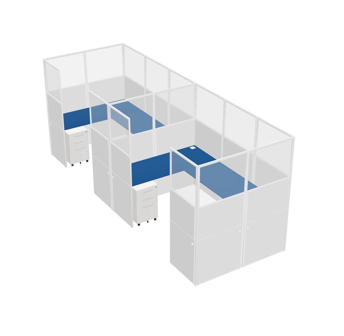 Prism Blue U-shaped Panel System For 2 Person + Metal Mobile Drawers For 2 User(s)