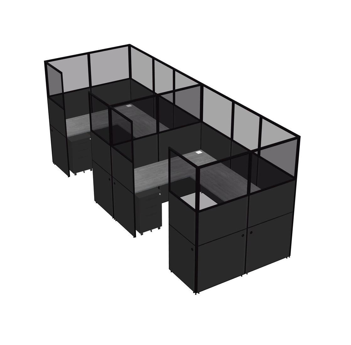 Grey U-shaped Panel System For 2 Person + Metal Mobile Drawers For 2 User(s)