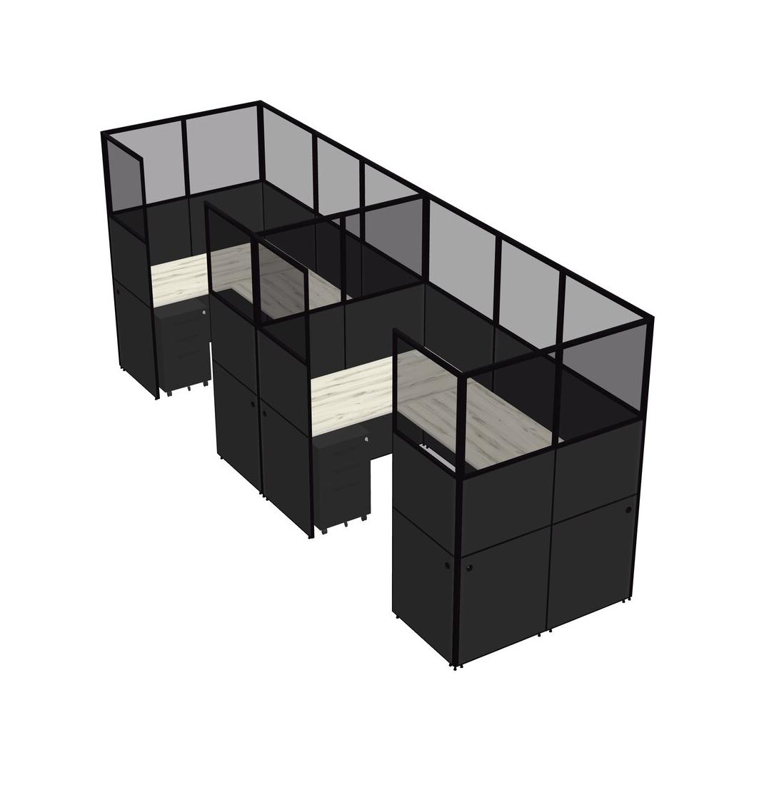 Heinne Holz U-shaped Panel System For 2 Person + Metal Mobile Drawers For 2 User(s)